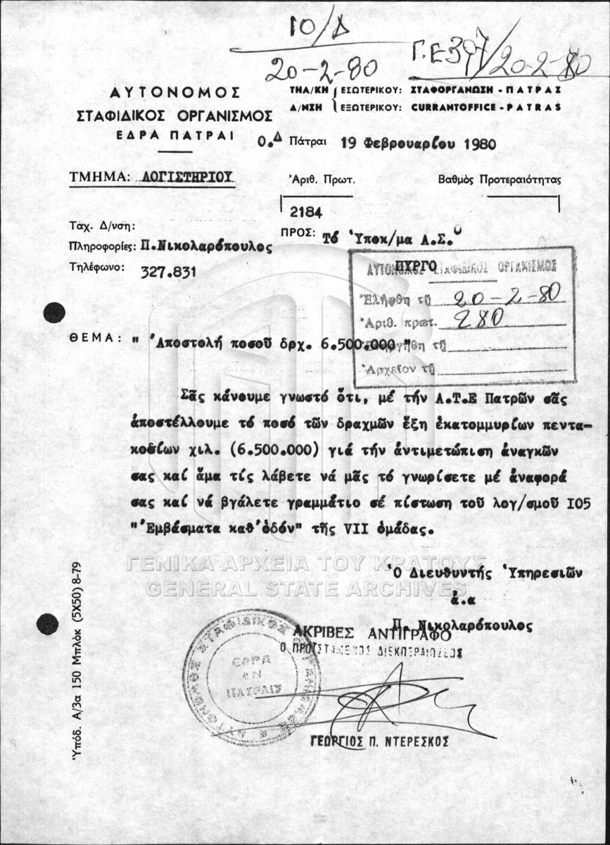 Subfile #006 - ΙΝΣΤΙΤΟΥΤΟ ΣΤΑΦΙΔΑΣ  [1979 - 1984]