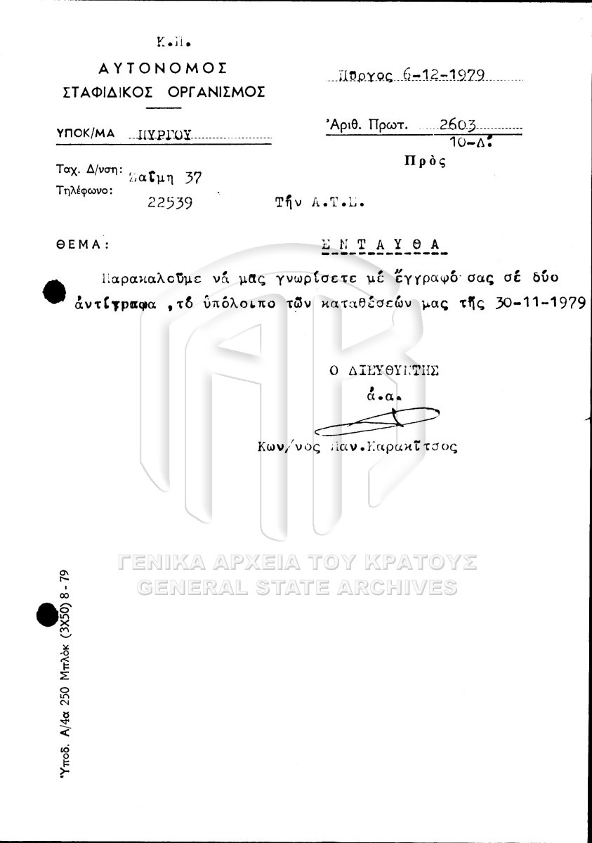 Subfile #006 - ΙΝΣΤΙΤΟΥΤΟ ΣΤΑΦΙΔΑΣ  [1979 - 1984]