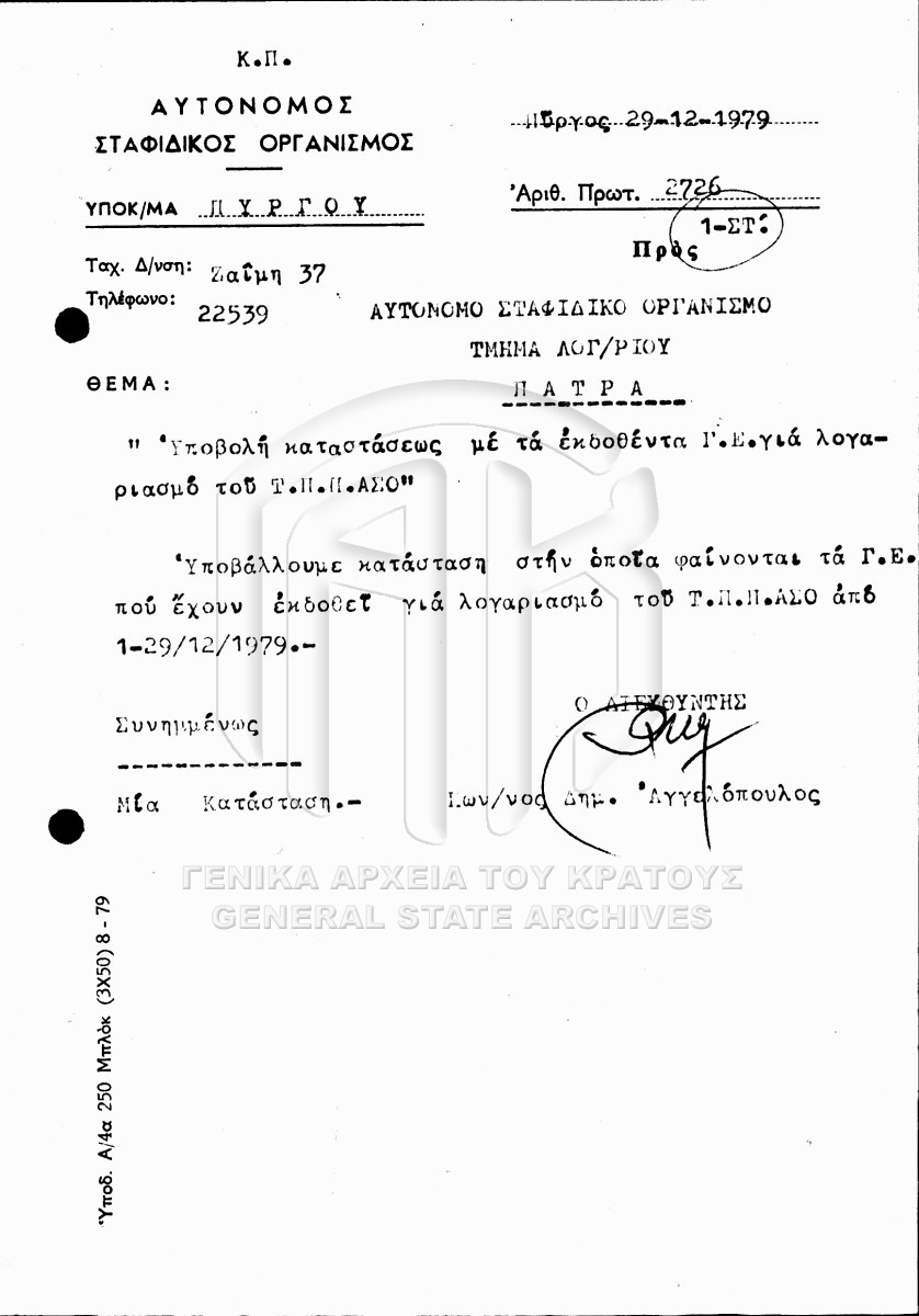 File #037 - ΙΝΣΤΙΤΟΥΤΟ ΣΤΑΦΙΔΑΣ  [1964 - 1981]