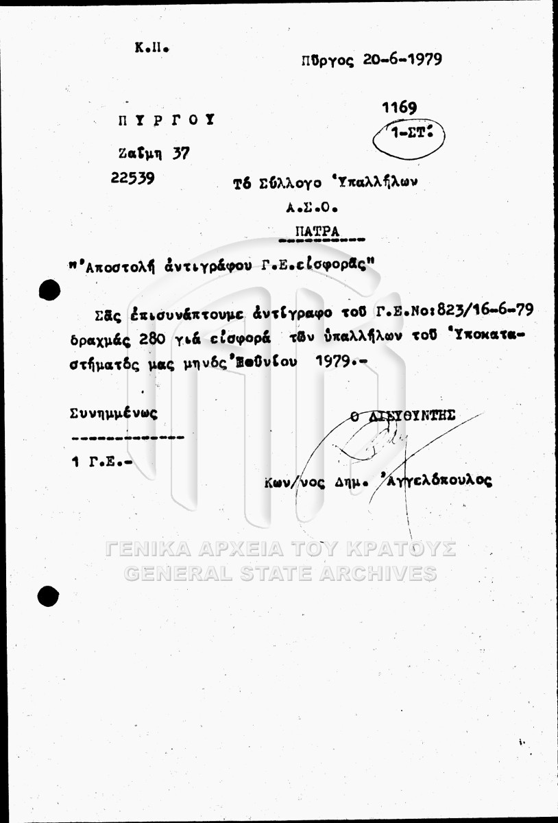 Contents: Καταστάσεις ημερομισθίων. Ταμείο πρόνοιας προσωπικού. Ταμείου ασφαλίσεως προσωπικού. Ταμείο πρόνοιας υπαλλήλων.