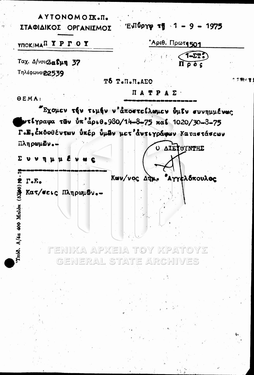 File #037 - ΙΝΣΤΙΤΟΥΤΟ ΣΤΑΦΙΔΑΣ  [1964 - 1981]