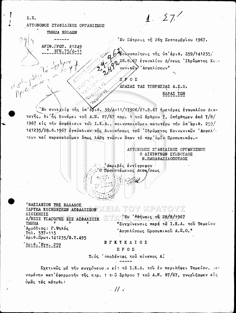 Fichier #037 - ΙΝΣΤΙΤΟΥΤΟ ΣΤΑΦΙΔΑΣ  [1964 - 1981]