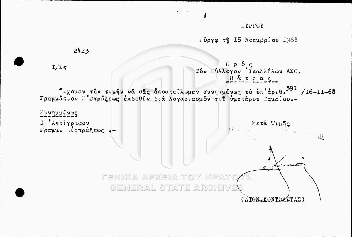 Περιεχόμενα: Καταστάσεις ημερομισθίων. Ταμείο πρόνοιας προσωπικού. Ταμείου ασφαλίσεως προσωπικού. Ταμείο πρόνοιας υπαλλήλων.