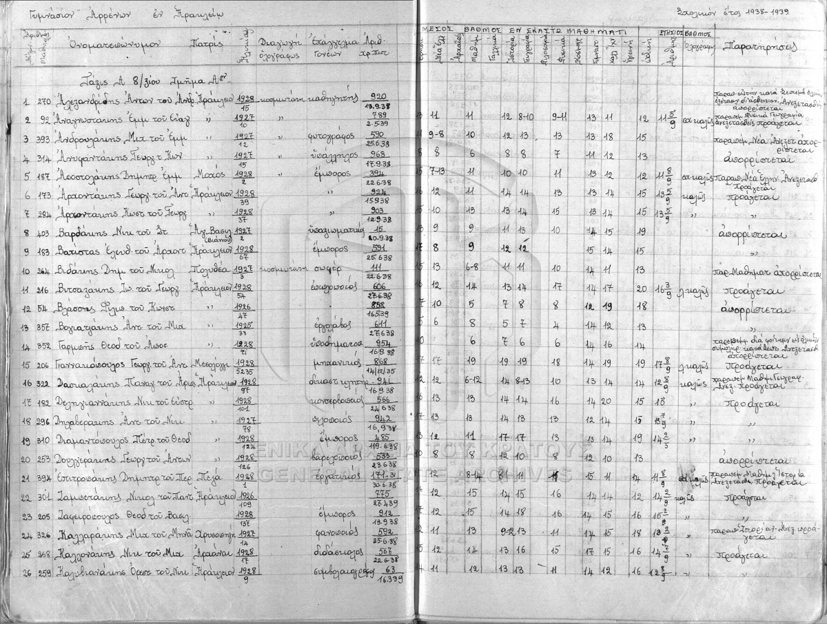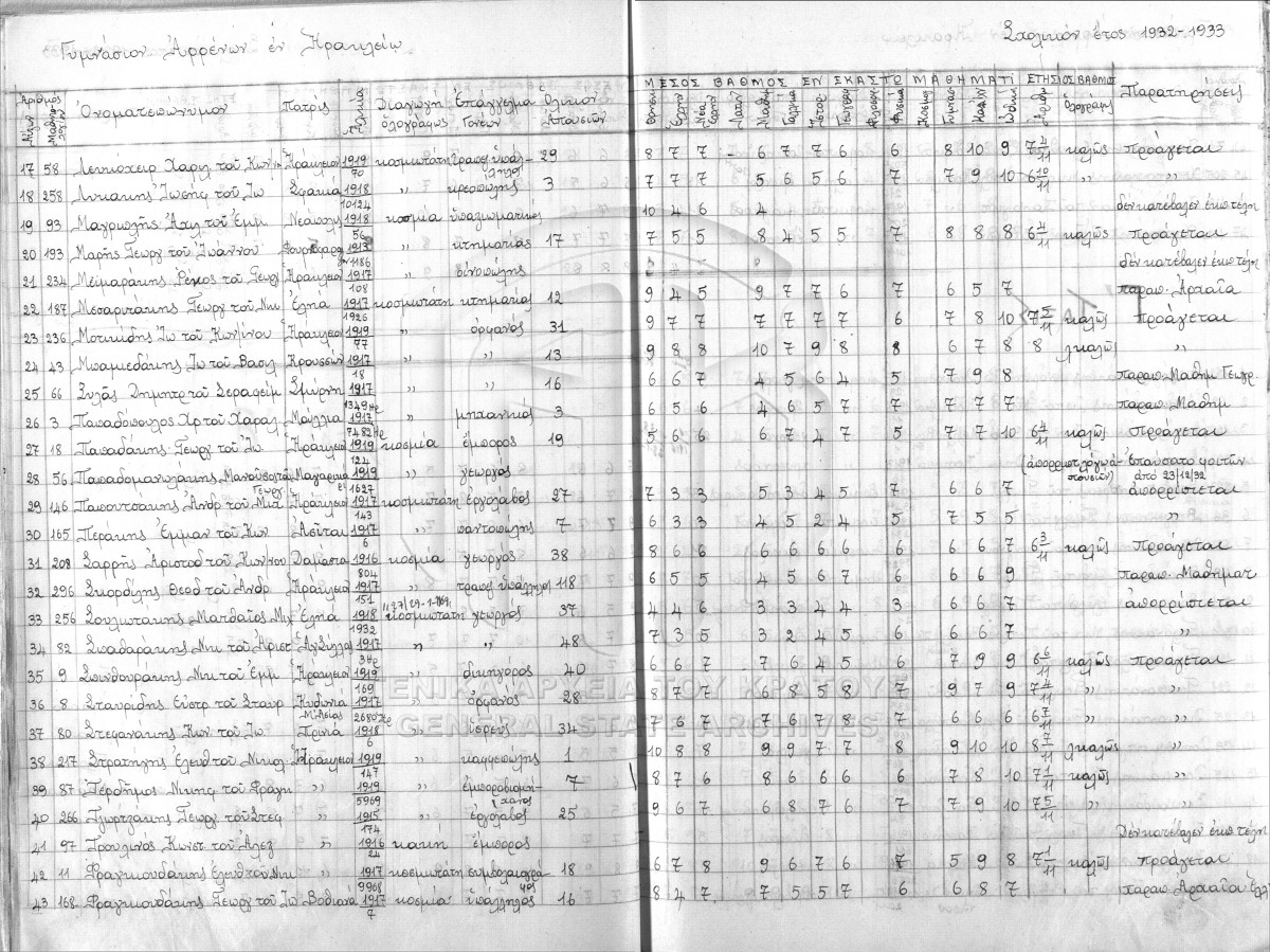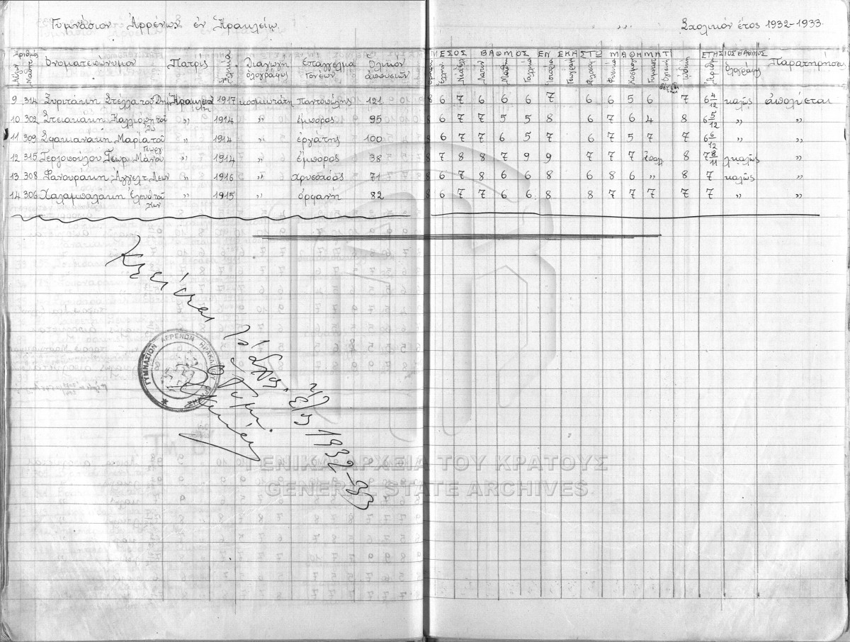 ΑΡΧΕΙΟ Α΄ ΓΥΜΝΑΣΙΟΥ ΑΡΡΕΝΩΝ ΗΡΑΚΛΕΙΟΥ  [1925 - 1982]
