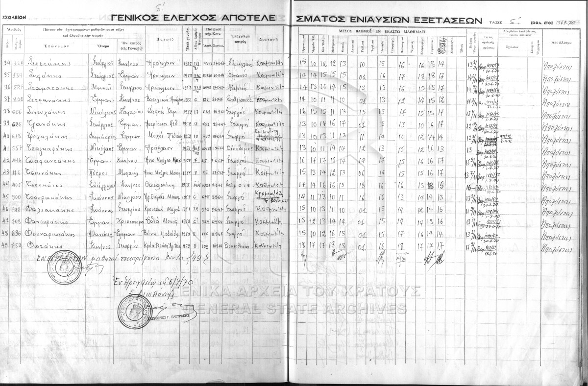 ΑΡΧΕΙΟ Α΄ ΓΥΜΝΑΣΙΟΥ ΑΡΡΕΝΩΝ ΗΡΑΚΛΕΙΟΥ  [1925 - 1982]