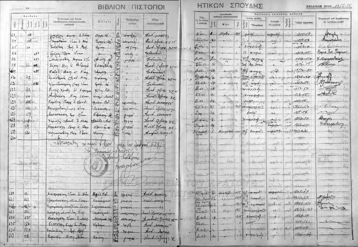 Περιεχόμενα: Βιβλίο πιστοποιητικών σπουδής.