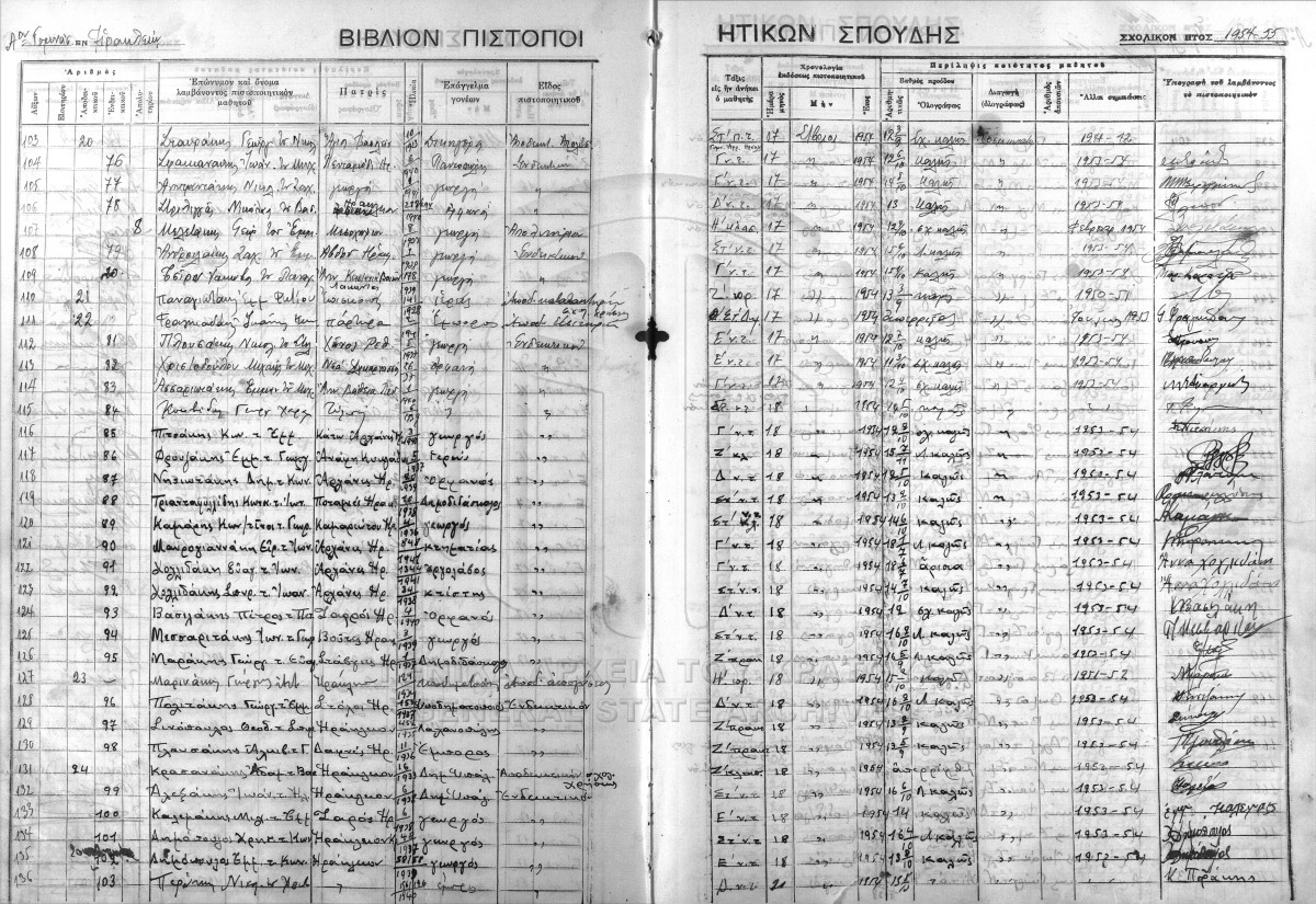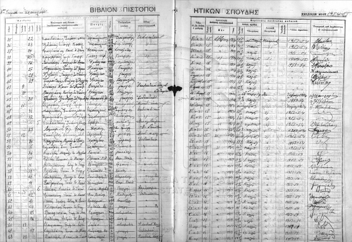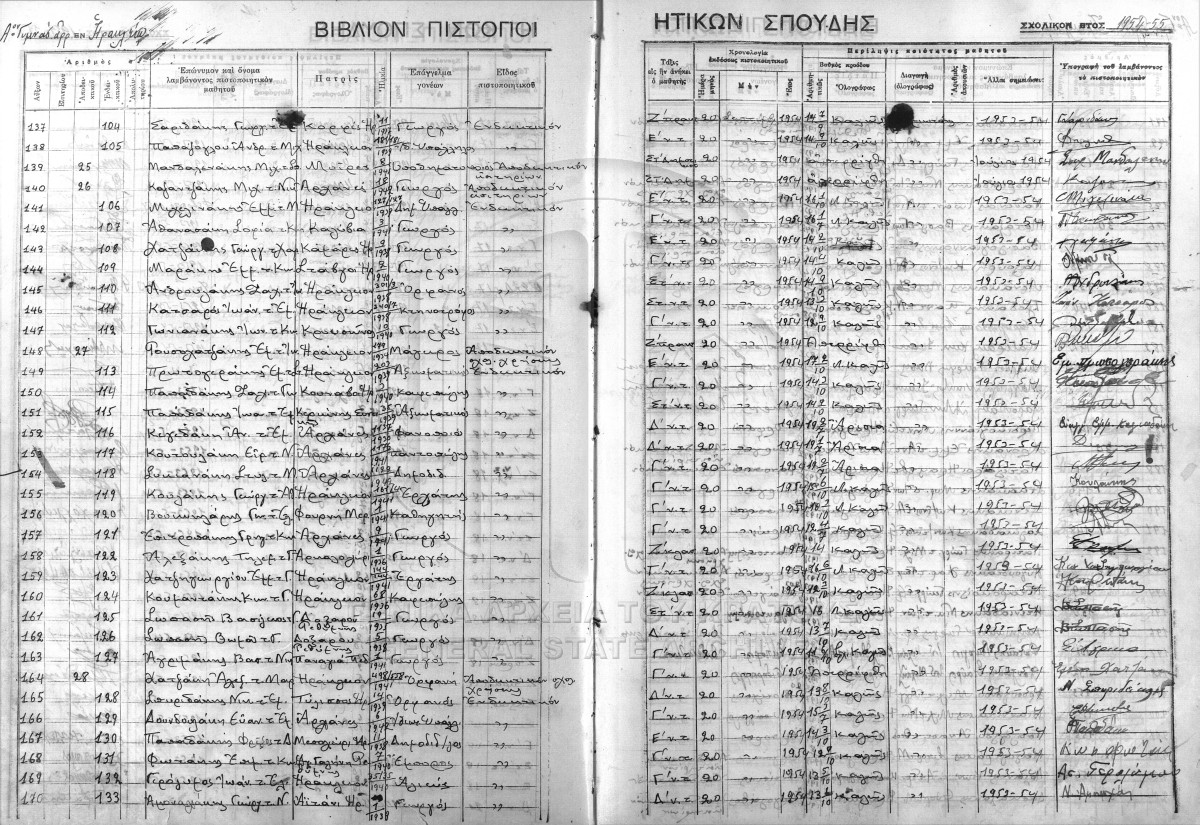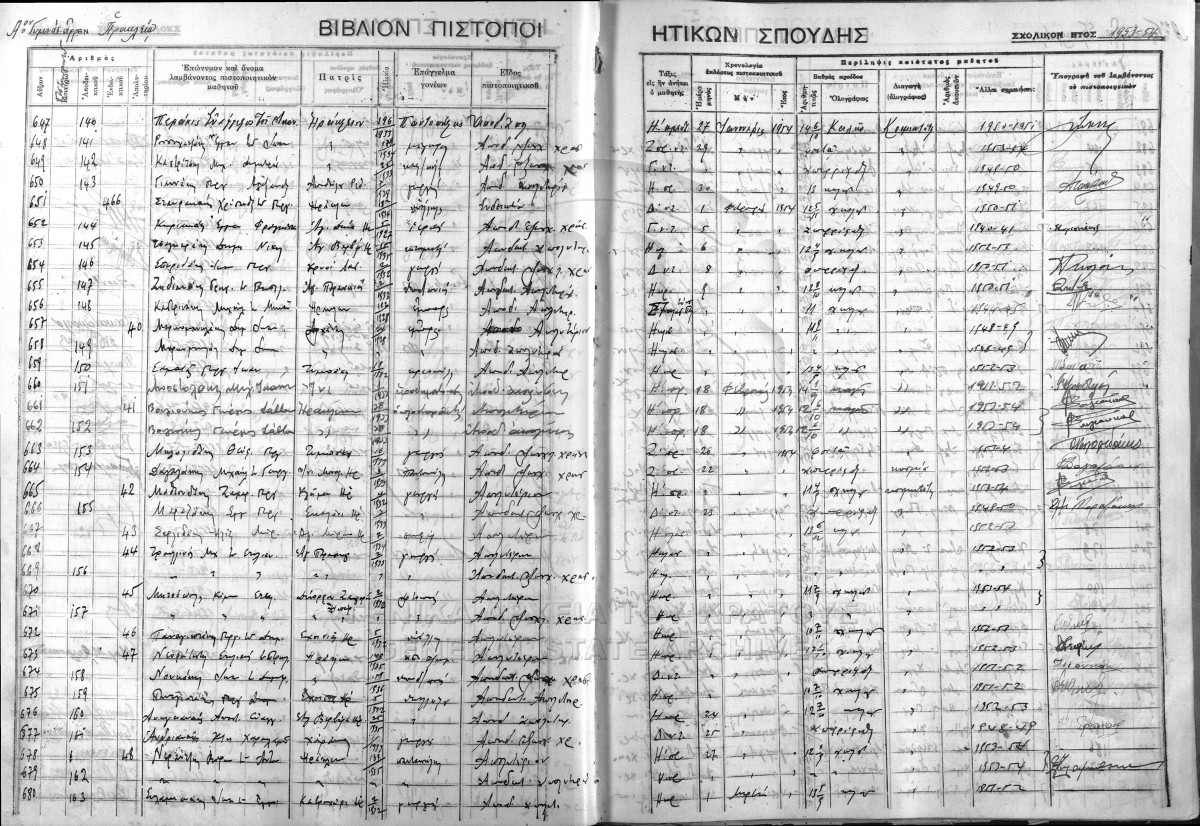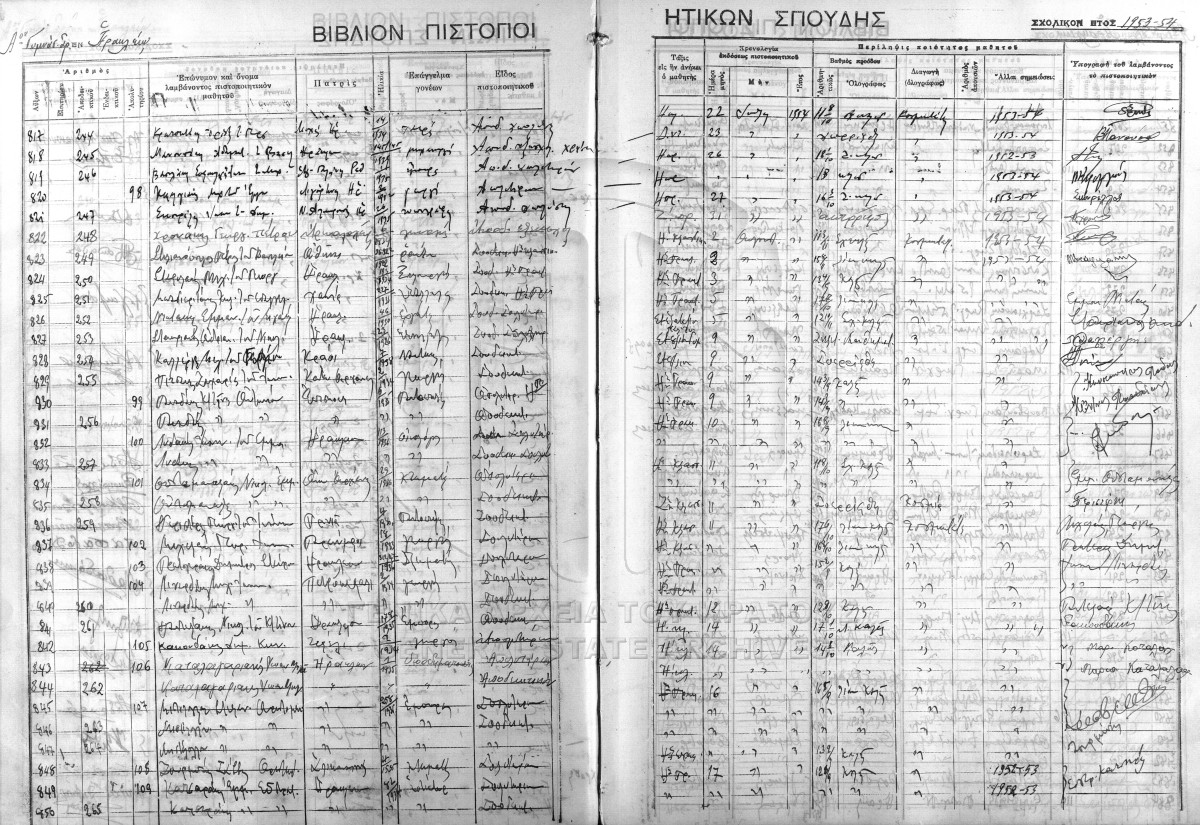 Περιεχόμενα: Βιβλίο πιστοποιητικών σπουδής.
