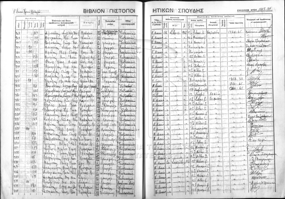 Contents: Βιβλίο Πιστοποιητικών Σπουδής.