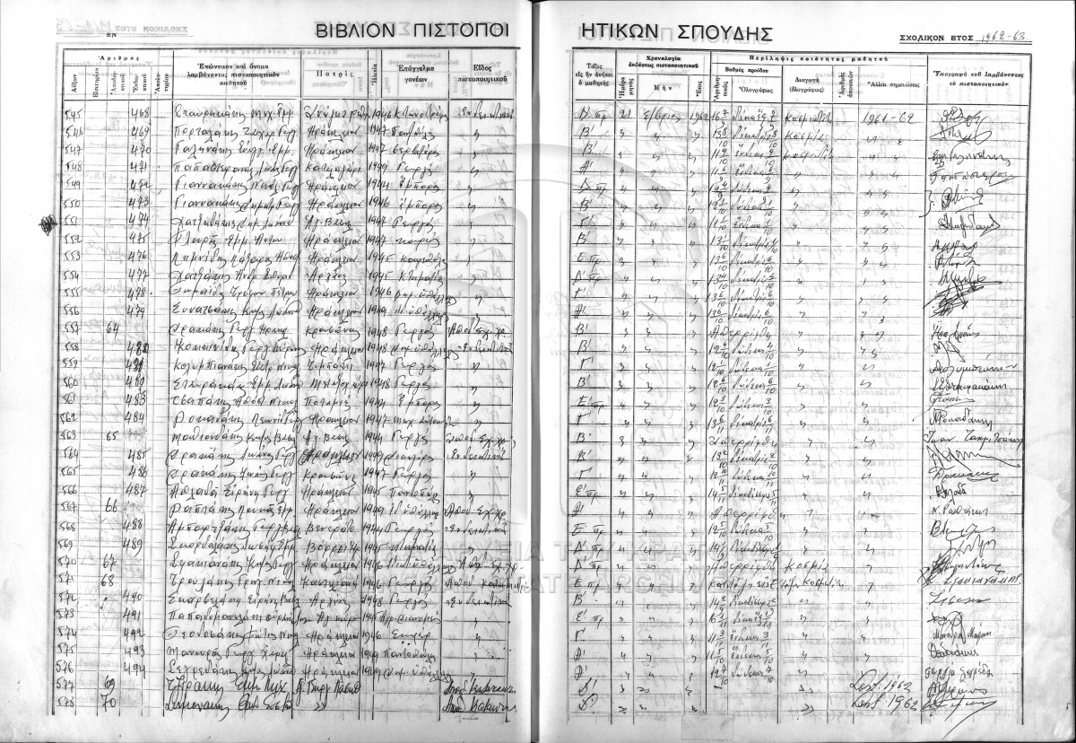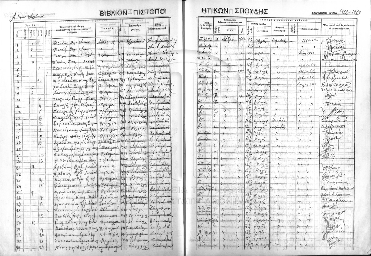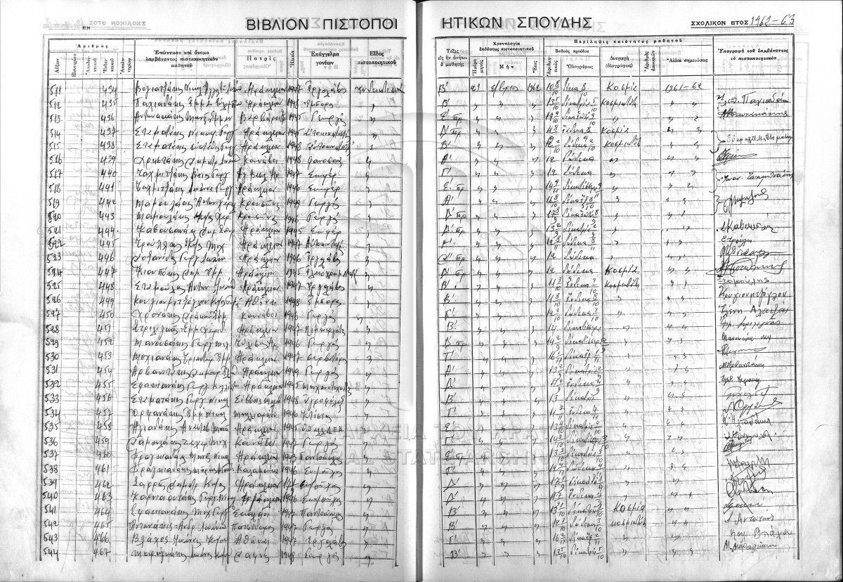 Contents: Βιβλίο Πιστοποιητικών Σπουδής.