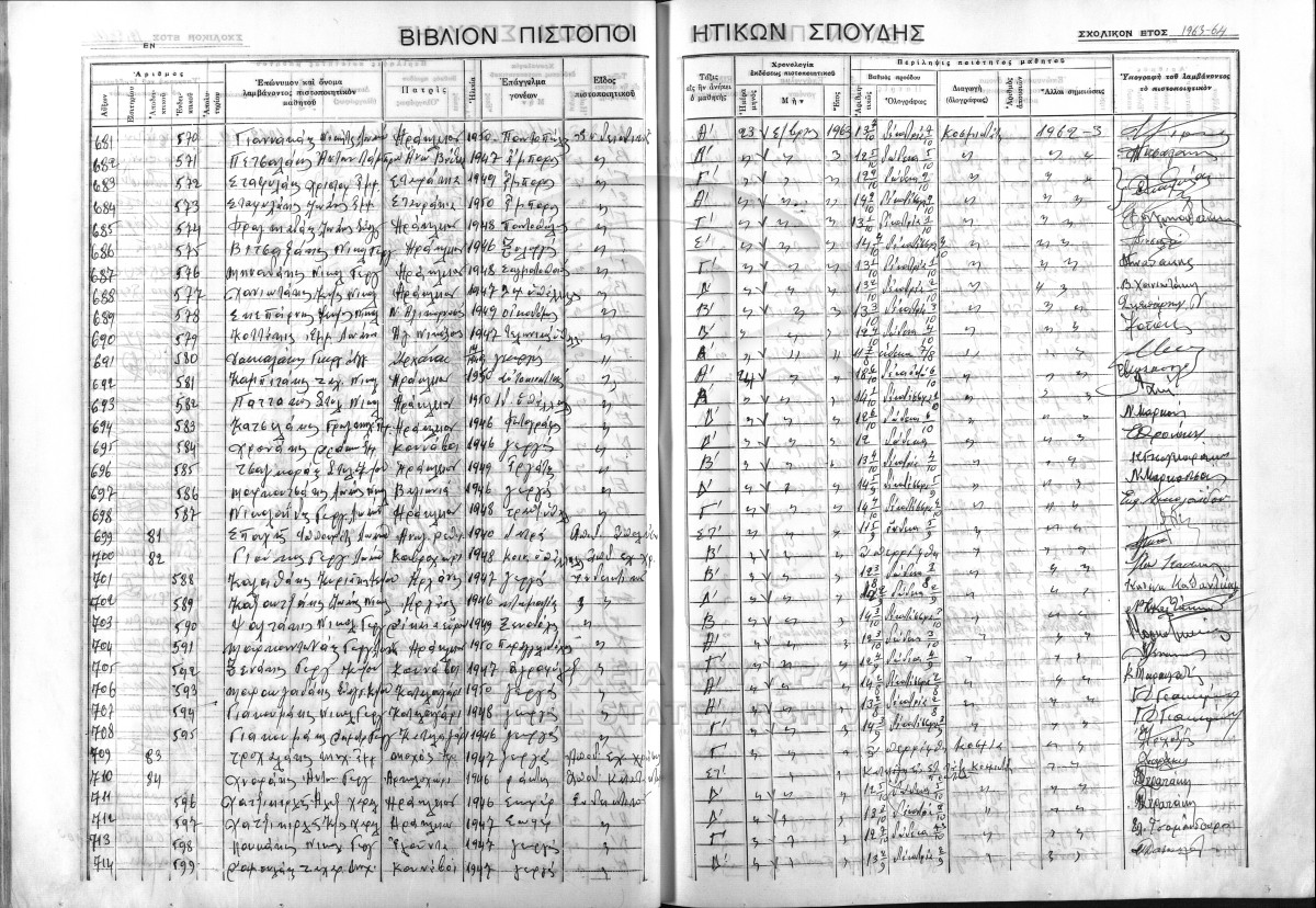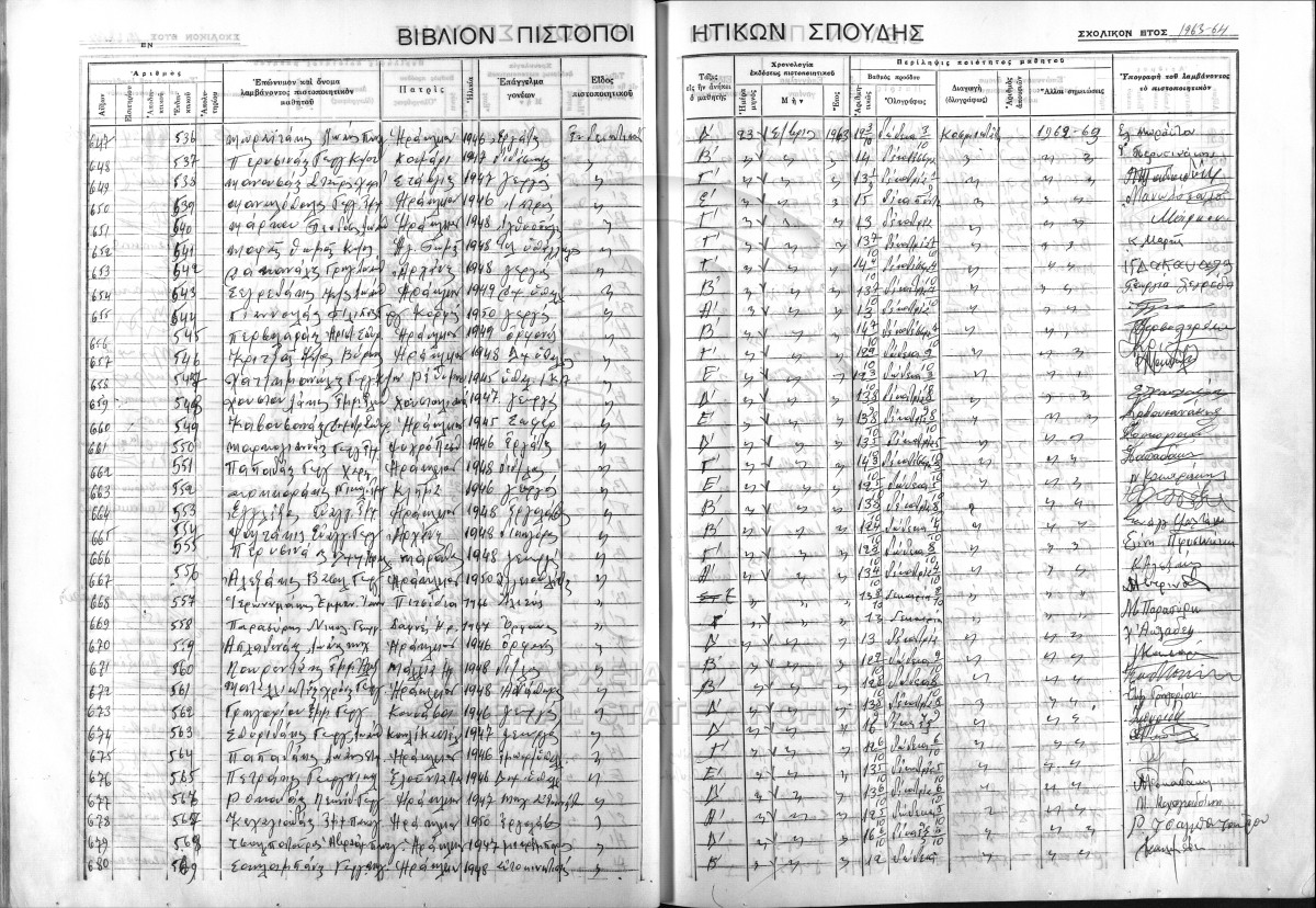 Contents: Βιβλίο Πιστοποιητικών Σπουδής.