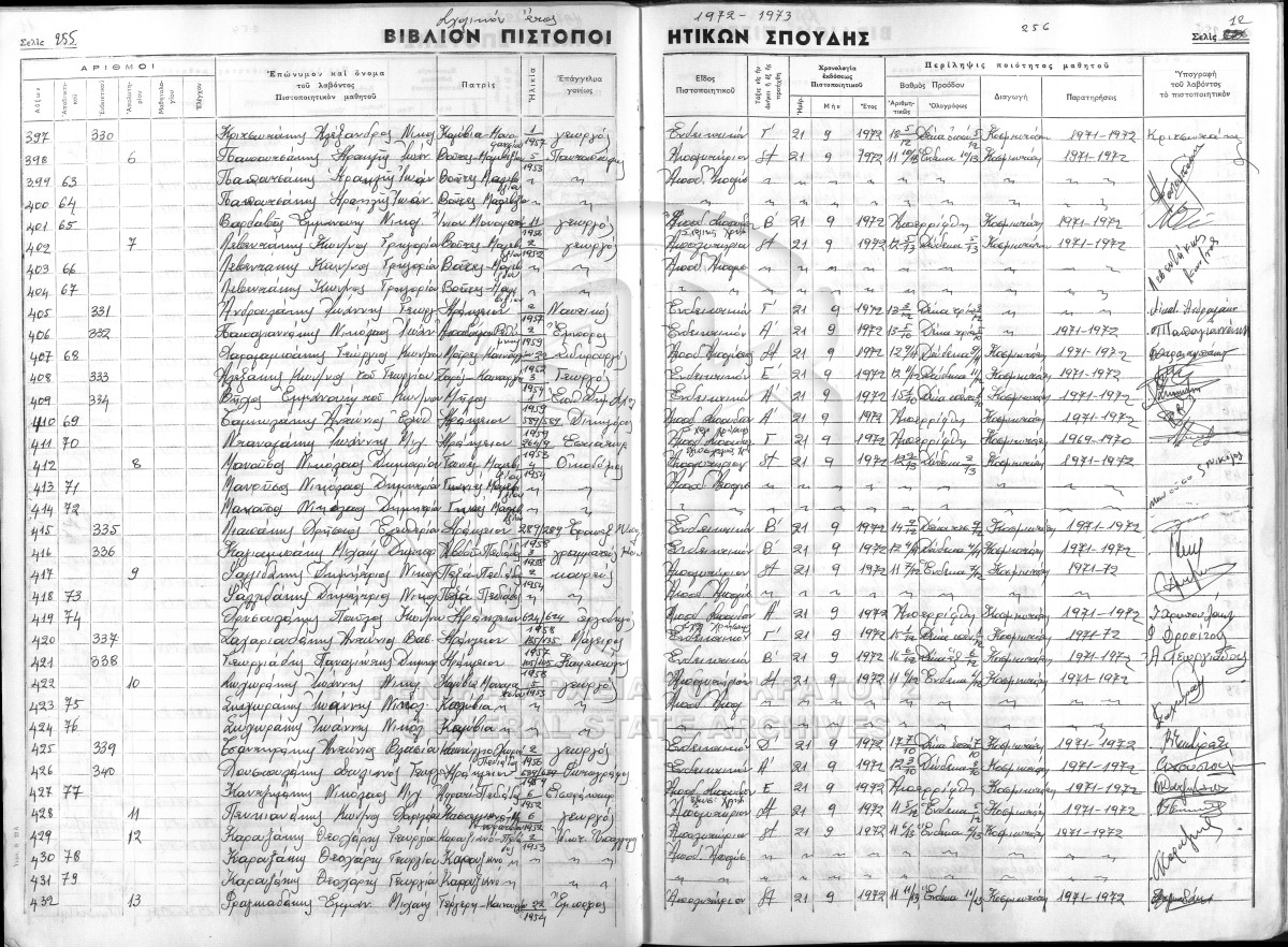 Βιβλίο Πιστοποιητικών Σπουδής.