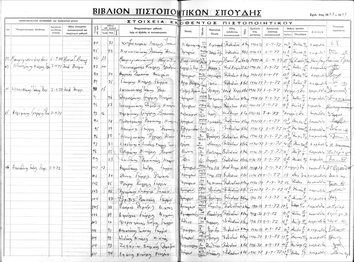[Pièce] GRGSA-IRA_EDU073.01.F000013.IT000028a Pièce #28a [1975 - 1979] Βιβλίο Πιστοποιητικών Σπουδής. |