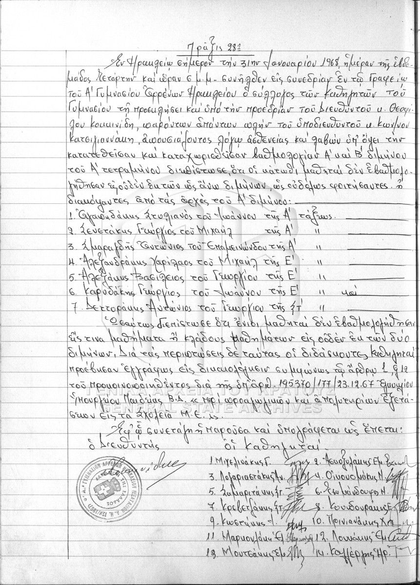 ΑΡΧΕΙΟ Α΄ ΓΥΜΝΑΣΙΟΥ ΑΡΡΕΝΩΝ ΗΡΑΚΛΕΙΟΥ  [1925 - 1982]