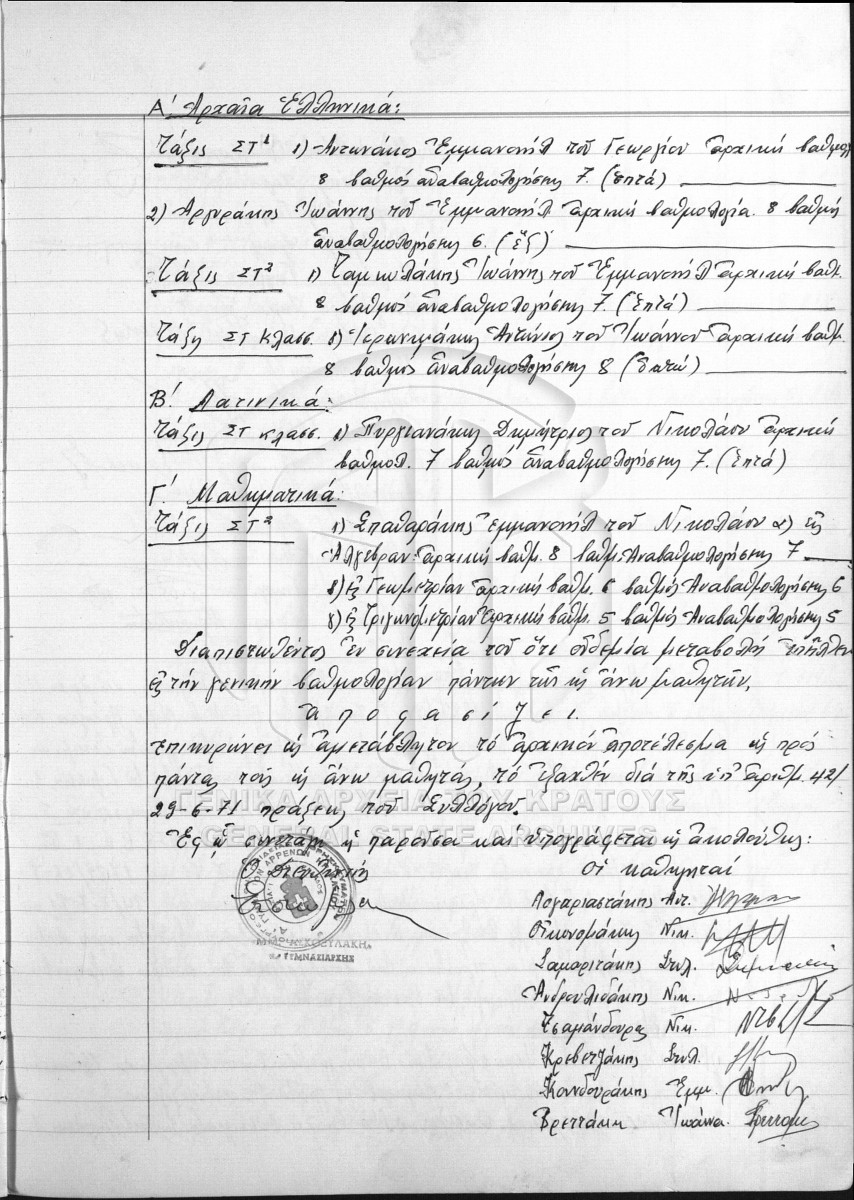 ΑΡΧΕΙΟ Α΄ ΓΥΜΝΑΣΙΟΥ ΑΡΡΕΝΩΝ ΗΡΑΚΛΕΙΟΥ  [1925 - 1982]
