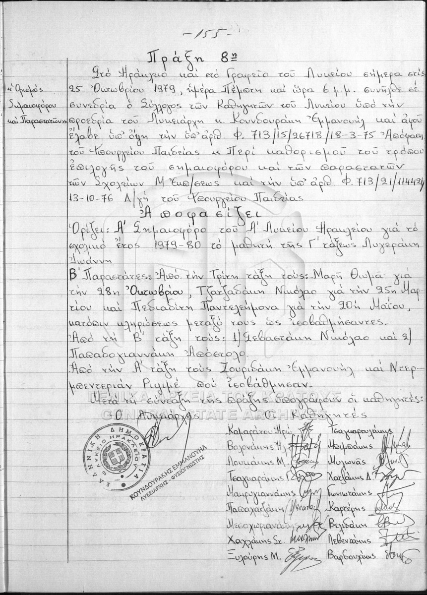 Βιβλίο Πράξεων Συλλόγου Καθηγητών.