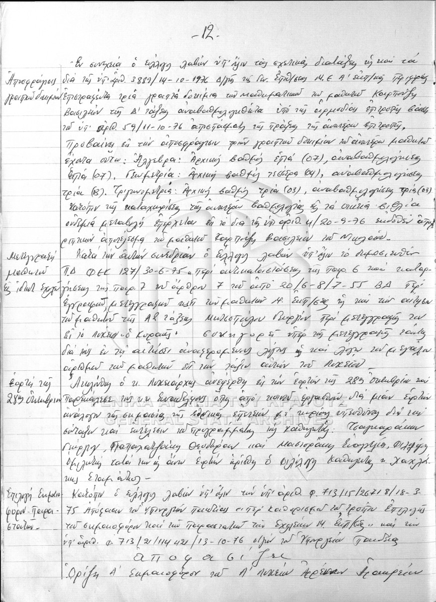 [Fonds] GRGSA-IRA_EDU073 ΑΡΧΕΙΟ Α΄ ΓΥΜΝΑΣΙΟΥ ΑΡΡΕΝΩΝ ΗΡΑΚΛΕΙΟΥ [1925 - 1982] Contents: |
