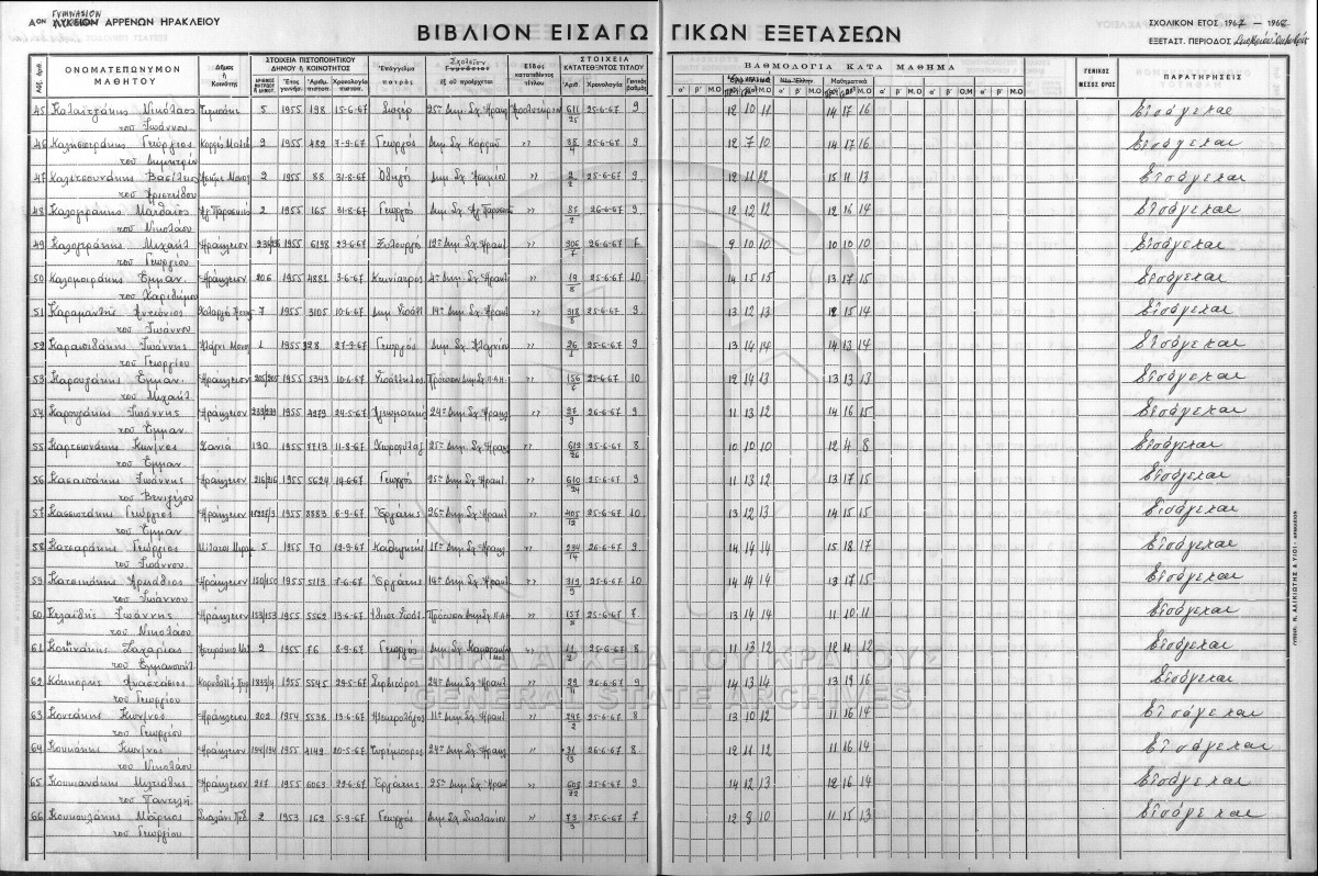 ΑΡΧΕΙΟ Α΄ ΓΥΜΝΑΣΙΟΥ ΑΡΡΕΝΩΝ ΗΡΑΚΛΕΙΟΥ  [1925 - 1982]