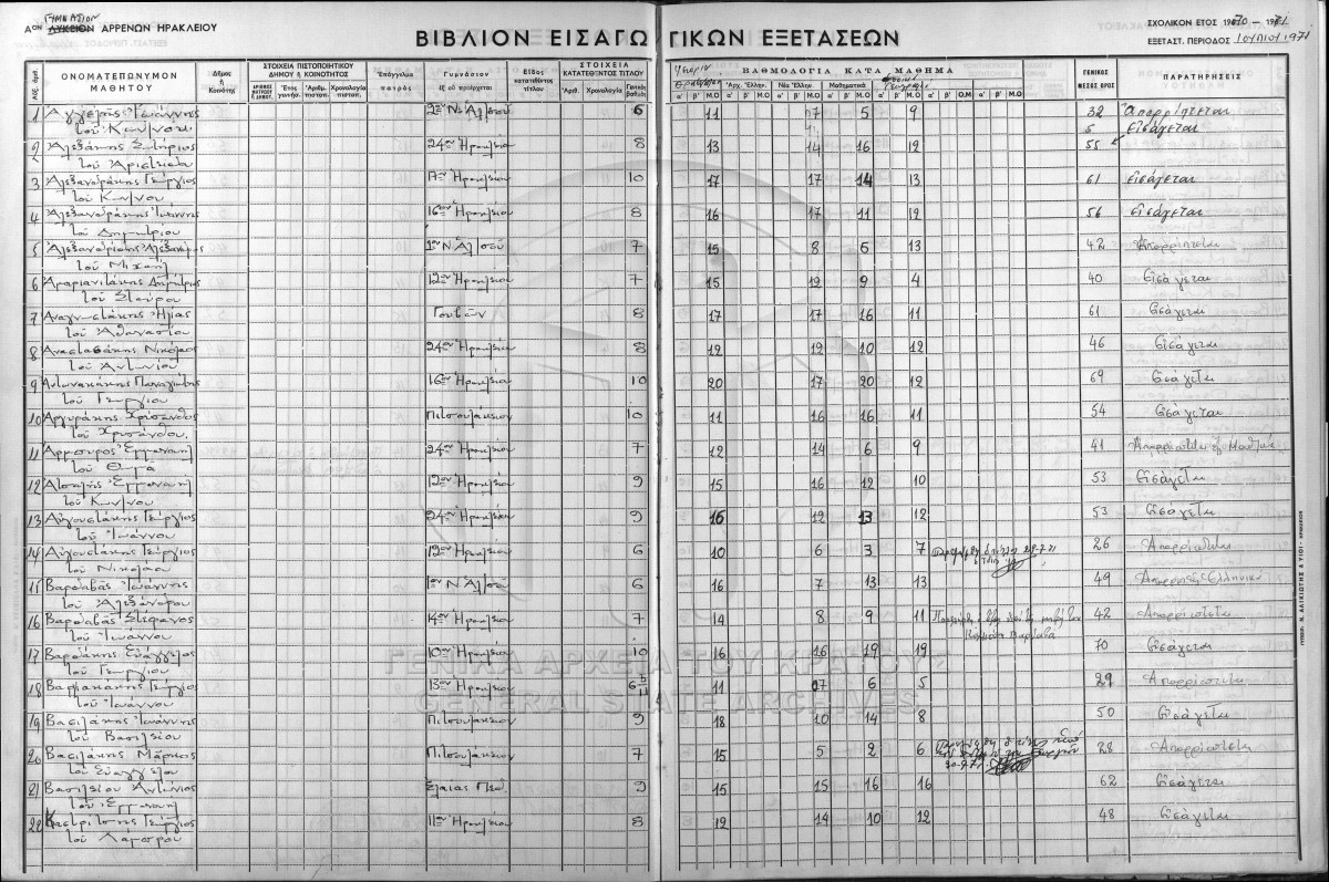 ΑΡΧΕΙΟ Α΄ ΓΥΜΝΑΣΙΟΥ ΑΡΡΕΝΩΝ ΗΡΑΚΛΕΙΟΥ  [1925 - 1982]