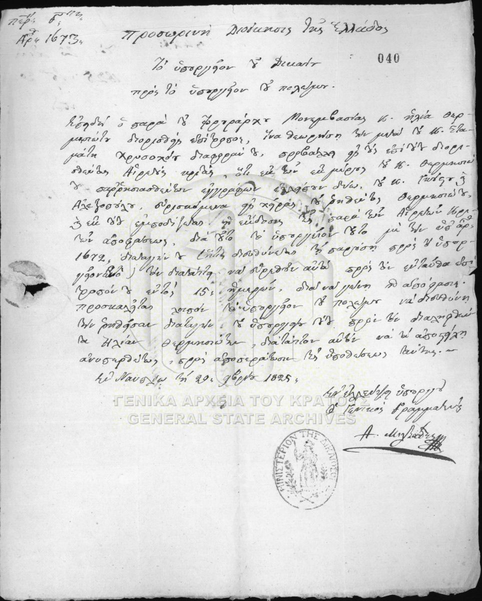 Αρχείο Μινιστέριου/Γραμματείας/Υπουργείου του Πολέμου (περιόδου Αγώνος)  [1822 - 1827]