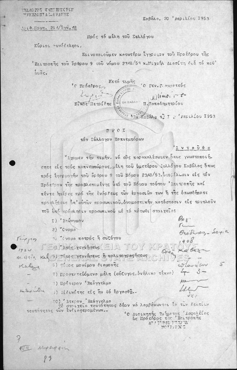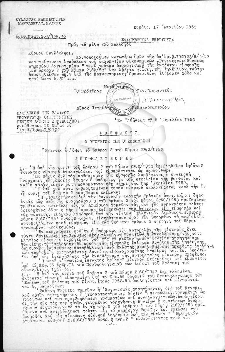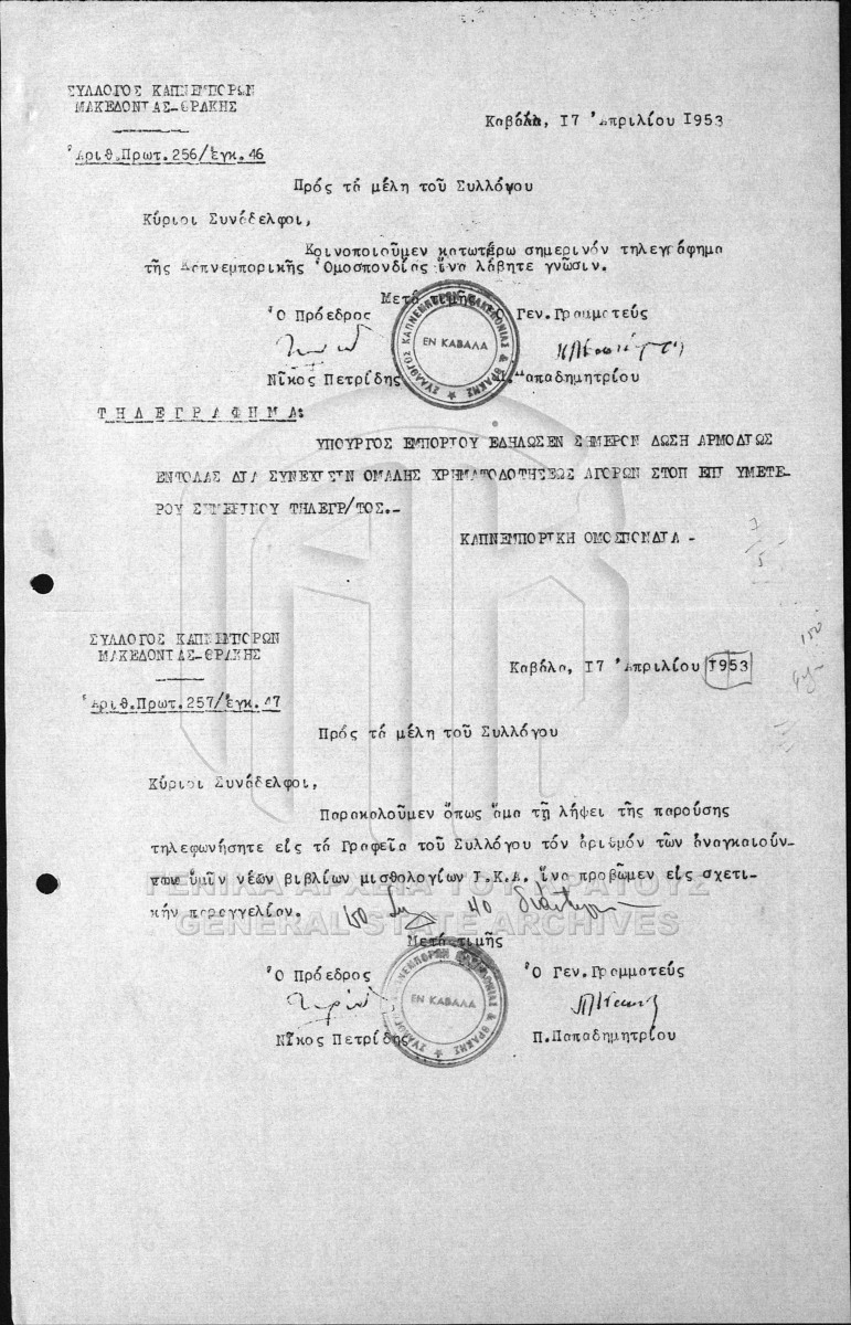 Εγκύκλιοι Συλλόγου Καπνεμπόρων Μακεδονίας - Θράκης.