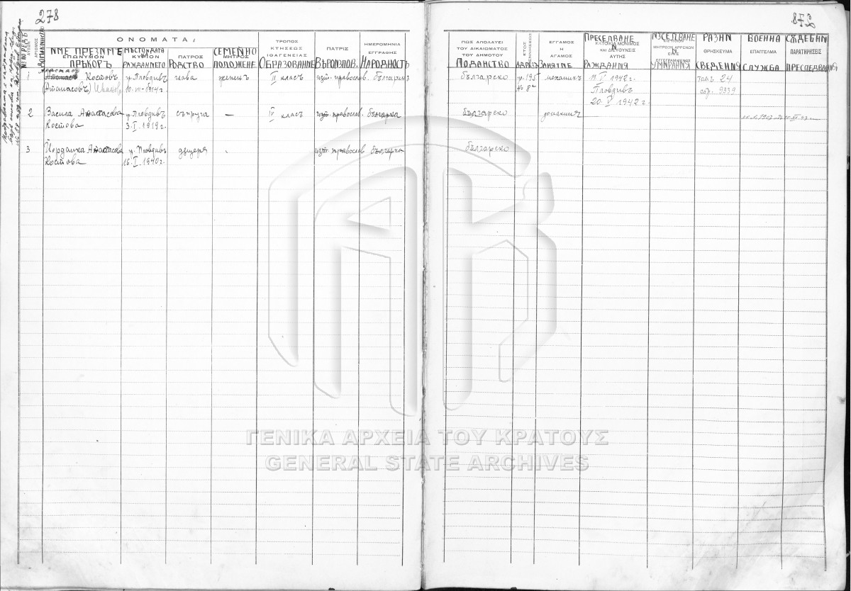 [Fonds] GRGSA-KAV_MUN002 ΑΡΧΕΙΟ ΤΜΗΜΑΤΟΣ ΔΗΜΟΤΙΚΗΣ ΚΑΤΑΣΤΑΣΗΣ ΔΗΜΟΥ ΚΑΒΑΛΑΣ (1929-1956) [1929 - 1956] Contenu: Βιβλίο Δημοτολογίου. |