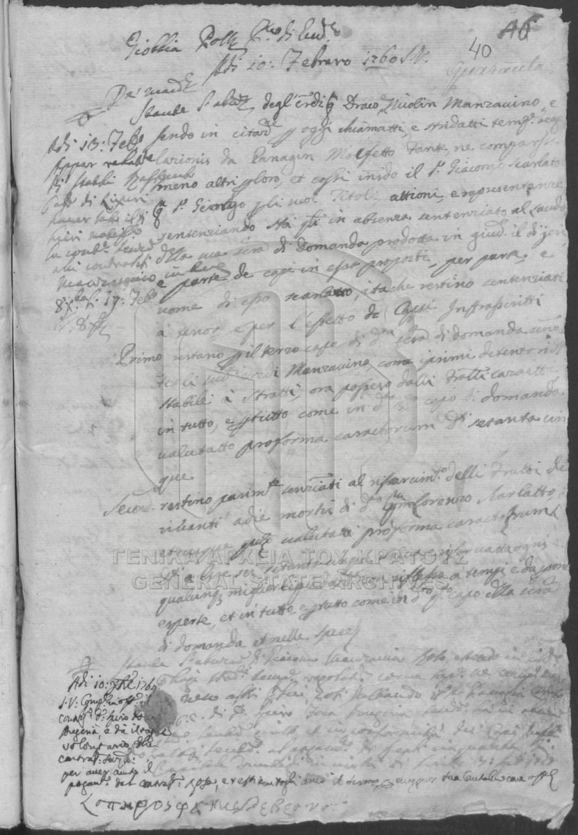 Subfile #004 - VENETIAN ADMINISTRATION ARCHIVE (1500-1797). THE CEFALONIA REGIME (REGGIMENTO DI CEFALONIA)  [1759 - 1761]