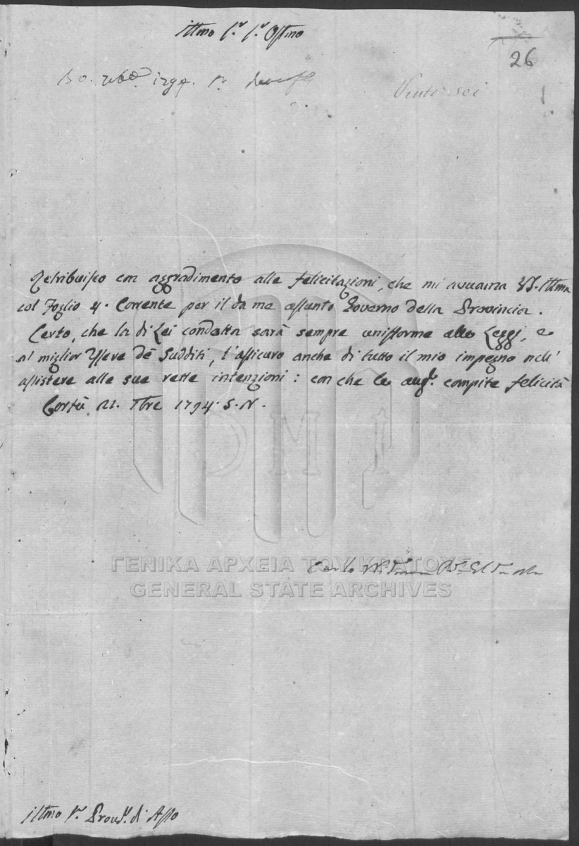 VENETIAN ADMINISTRATION ARCHIVE: (1597-1797). ADMINISTRATION OF THE ASSOS FORTRESS. PROVEDITORI OF ASSOS. - VENETIAN ADMINISTRATION ARCHIVE: (1597-1797). ADMINISTRATION OF THE ASSOS FORTRESS. PROVEDITORI OF ASSOS.  [1597 - 1797]