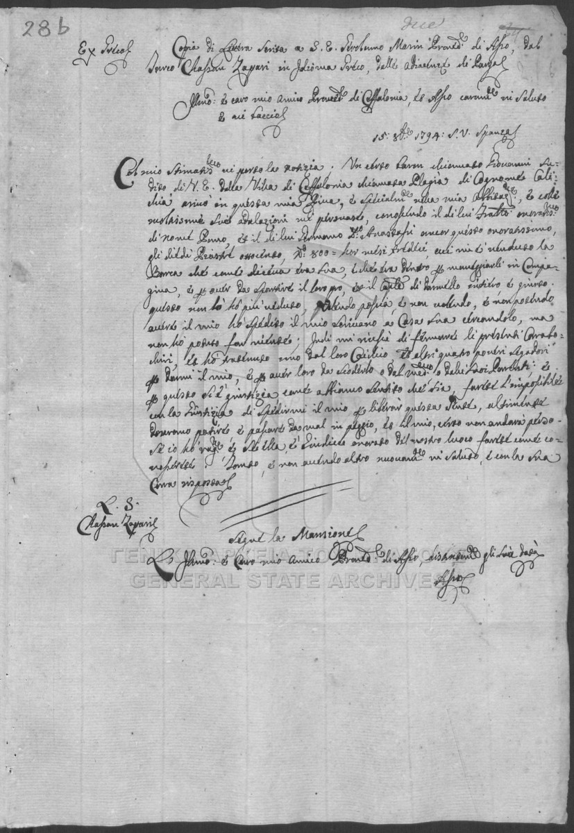 Υποφάκελος #003 - ''Filze lettere diverse ricevute dal Provveditor di Asso''  [1794]