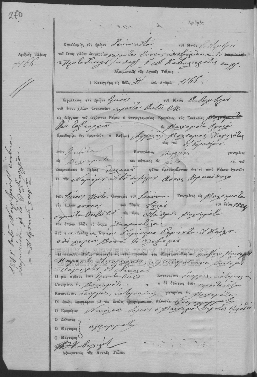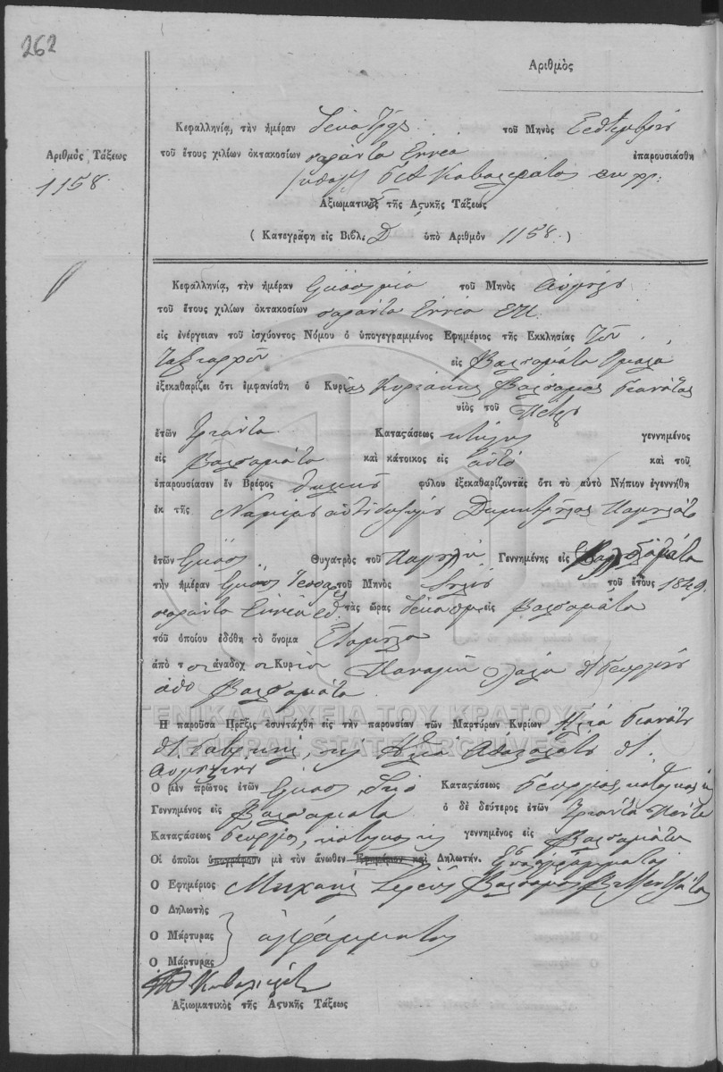 Ληξιαρχικό Αρχείο-Βιβλία Πολιτικών Αρχών Επαρχιών Κραναίας-Σάμης  [1841 - 1932]