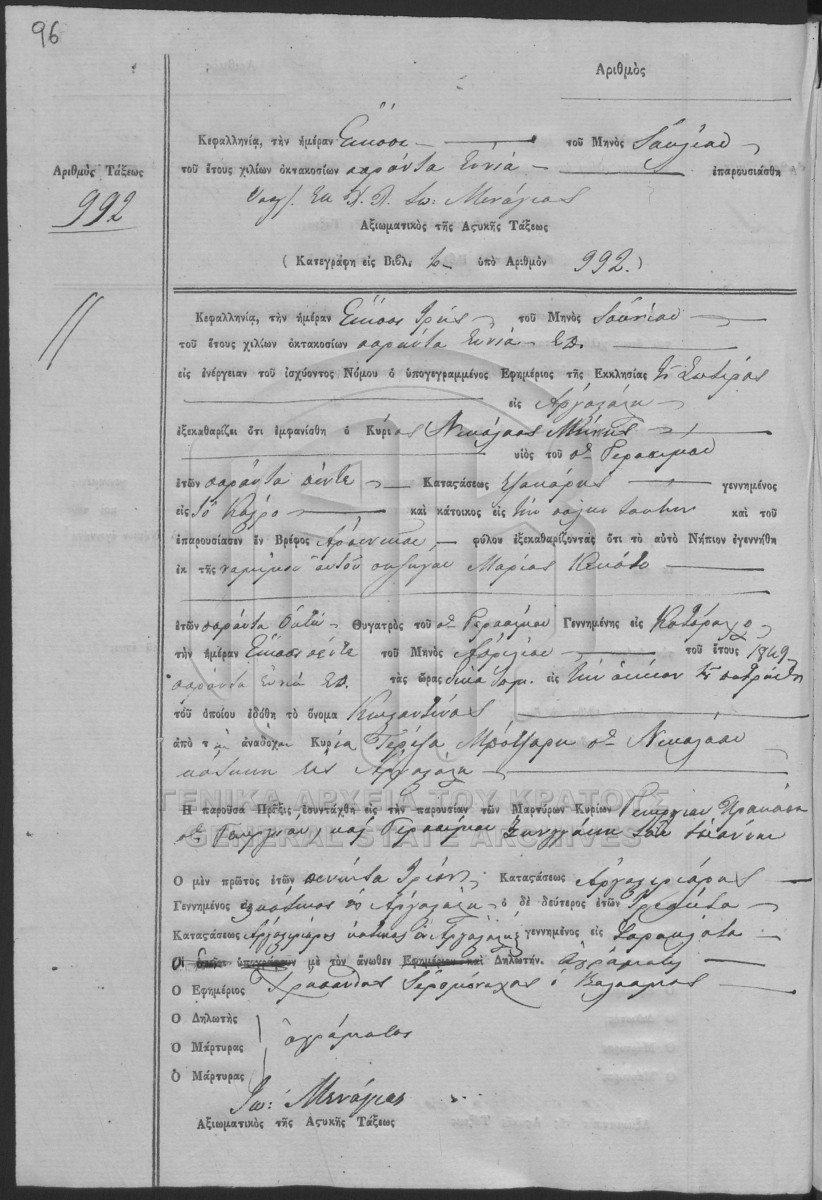 Στο αρχείο περιλαμβάνονται βιβλία όπου καταγράφονται ληξιαρχικές πράξεις γεννήσεων, γάμων, θανάτων, καθώς και σχετικά ευρετήρια των επαρχ...