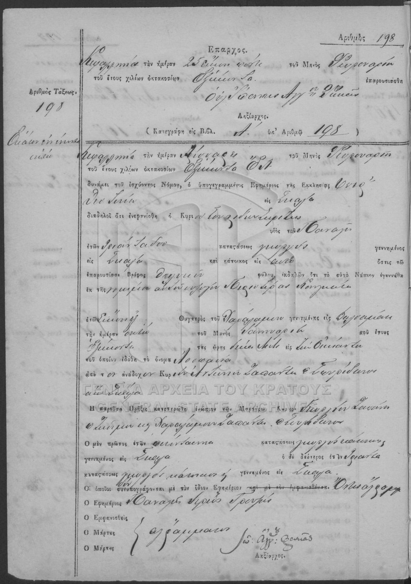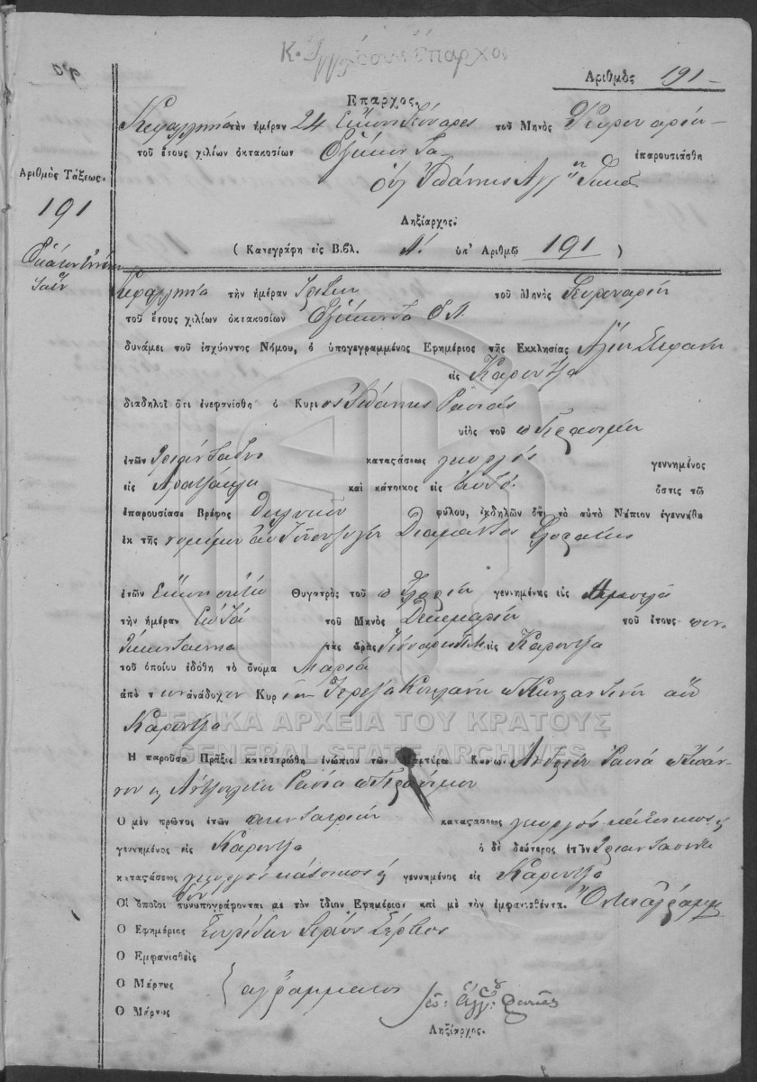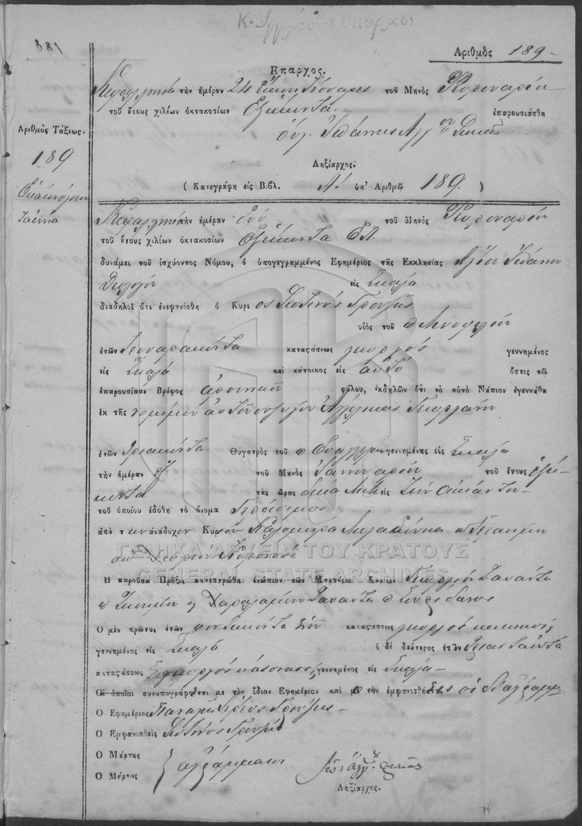 Ληξιαρχικό Αρχείο-Βιβλία Πολιτικών Αρχών Επαρχιών Κραναίας-Σάμης  [1841 - 1932]