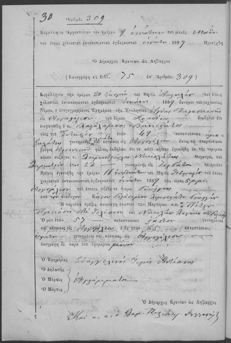 Στο αρχείο περιλαμβάνονται βιβλία όπου καταγράφονται ληξιαρχικές πράξεις γεννήσεων, γάμων, θανάτων, καθώς και σχετικά ευρετήρια των επαρχ...