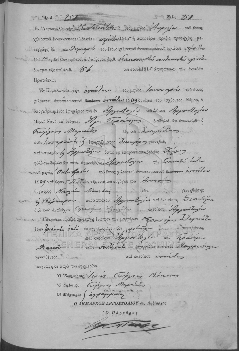 Ληξιαρχικό Αρχείο-Βιβλία Πολιτικών Αρχών Επαρχιών Κραναίας-Σάμης  [1841 - 1932]