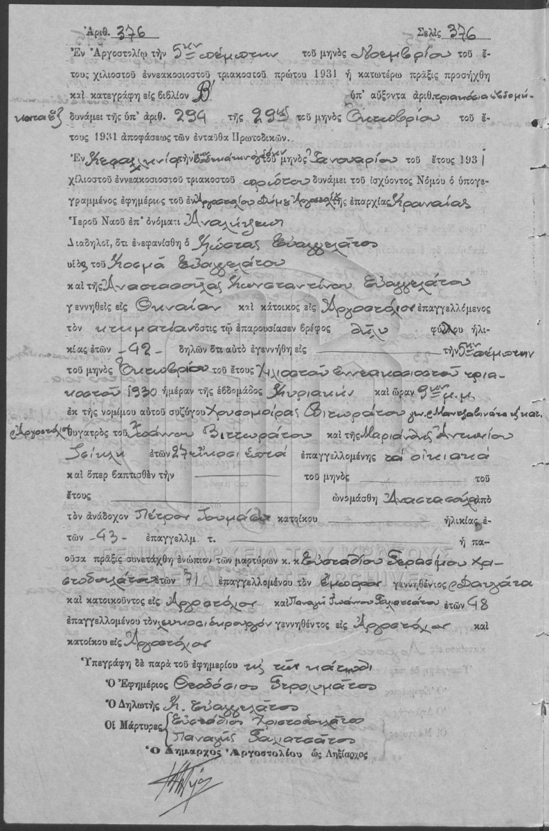 Στο αρχείο περιλαμβάνονται βιβλία όπου καταγράφονται ληξιαρχικές πράξεις γεννήσεων, γάμων, θανάτων, καθώς και σχετικά ευρετήρια των επαρχ...