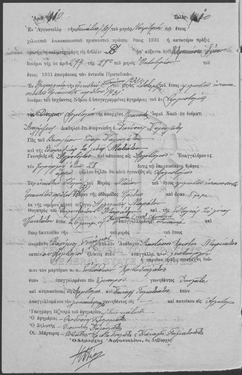 Στο αρχείο περιλαμβάνονται βιβλία όπου καταγράφονται ληξιαρχικές πράξεις γεννήσεων, γάμων, θανάτων, καθώς και σχετικά ευρετήρια των επαρχ...