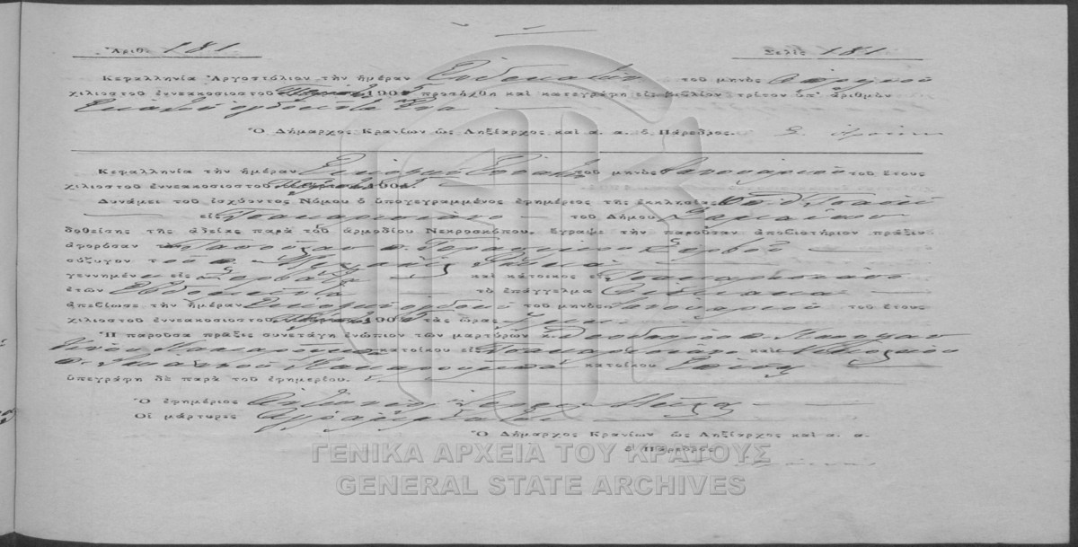 Ληξιαρχικό Αρχείο-Βιβλία Πολιτικών Αρχών Επαρχιών Κραναίας-Σάμης  [1841 - 1932]