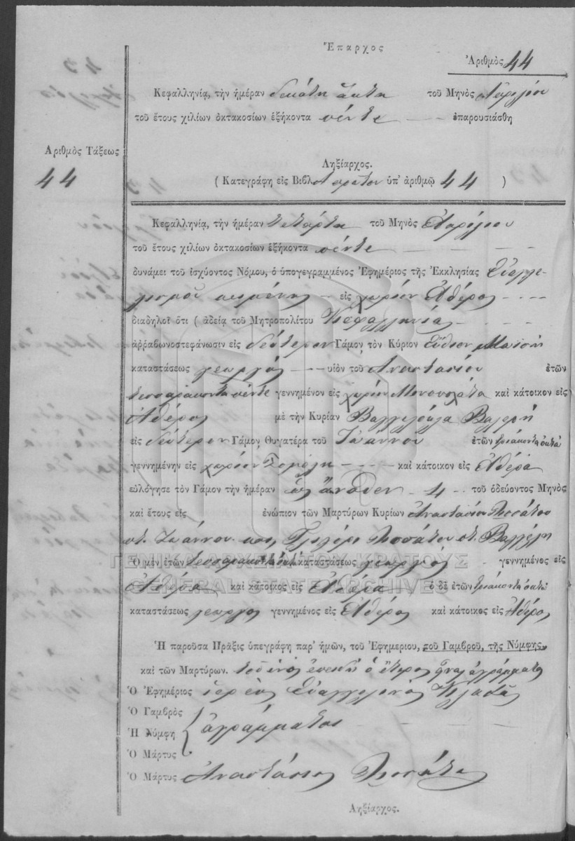 [Υποφάκελος] GRGSA-KEF_REG002.S02.01.F000059.SF0002 Υποφάκελος #002 - Βιβλίο γάμων [1865] |