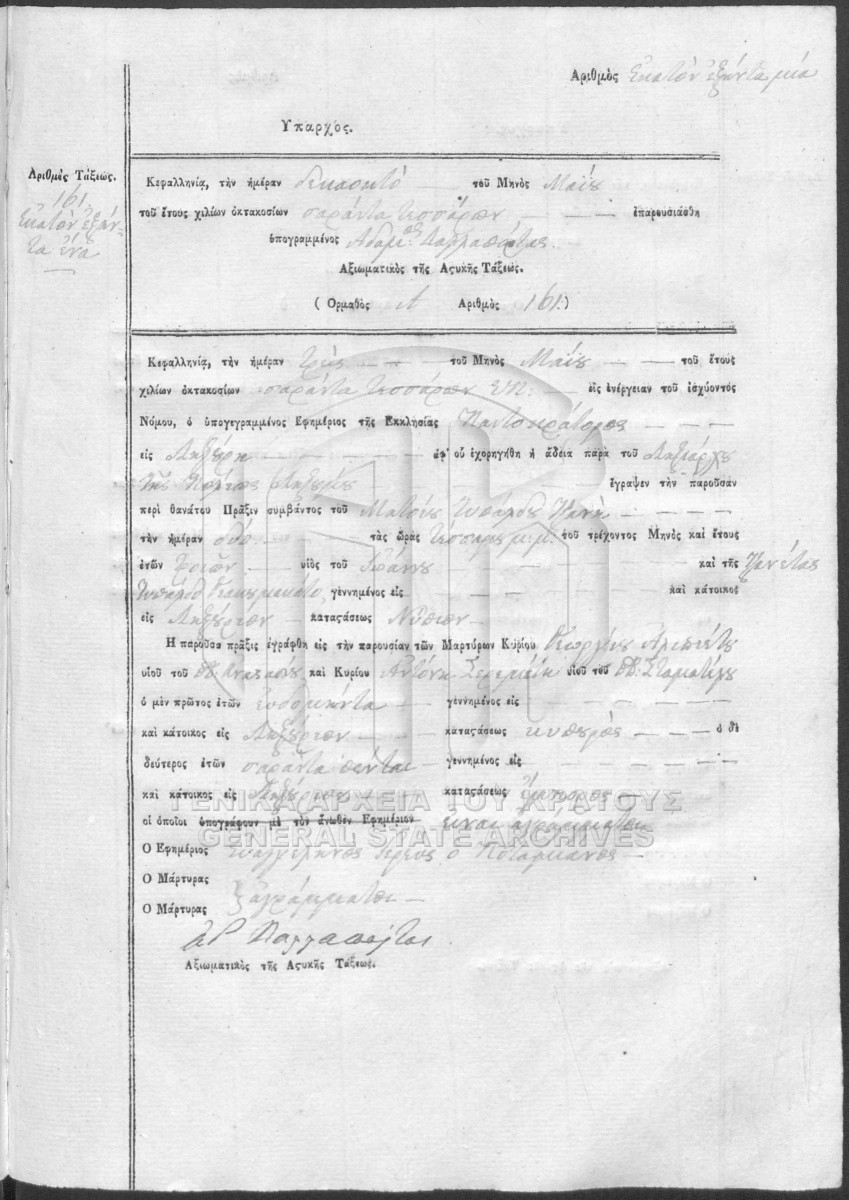 Ληξιαρχικό Αρχείο-Βιβλία Πολιτικών Αρχών Επαρχίας Πάλλης.  [1841 - 1932]