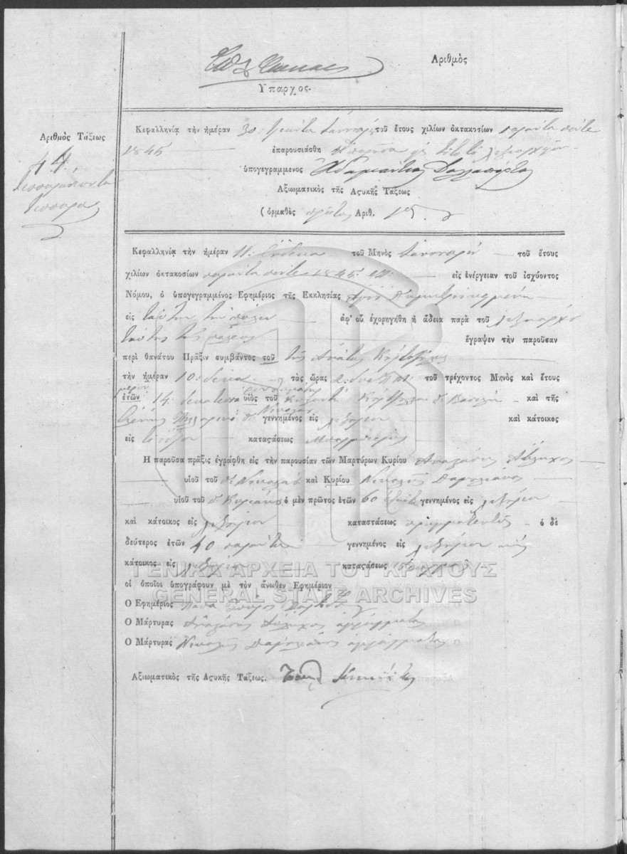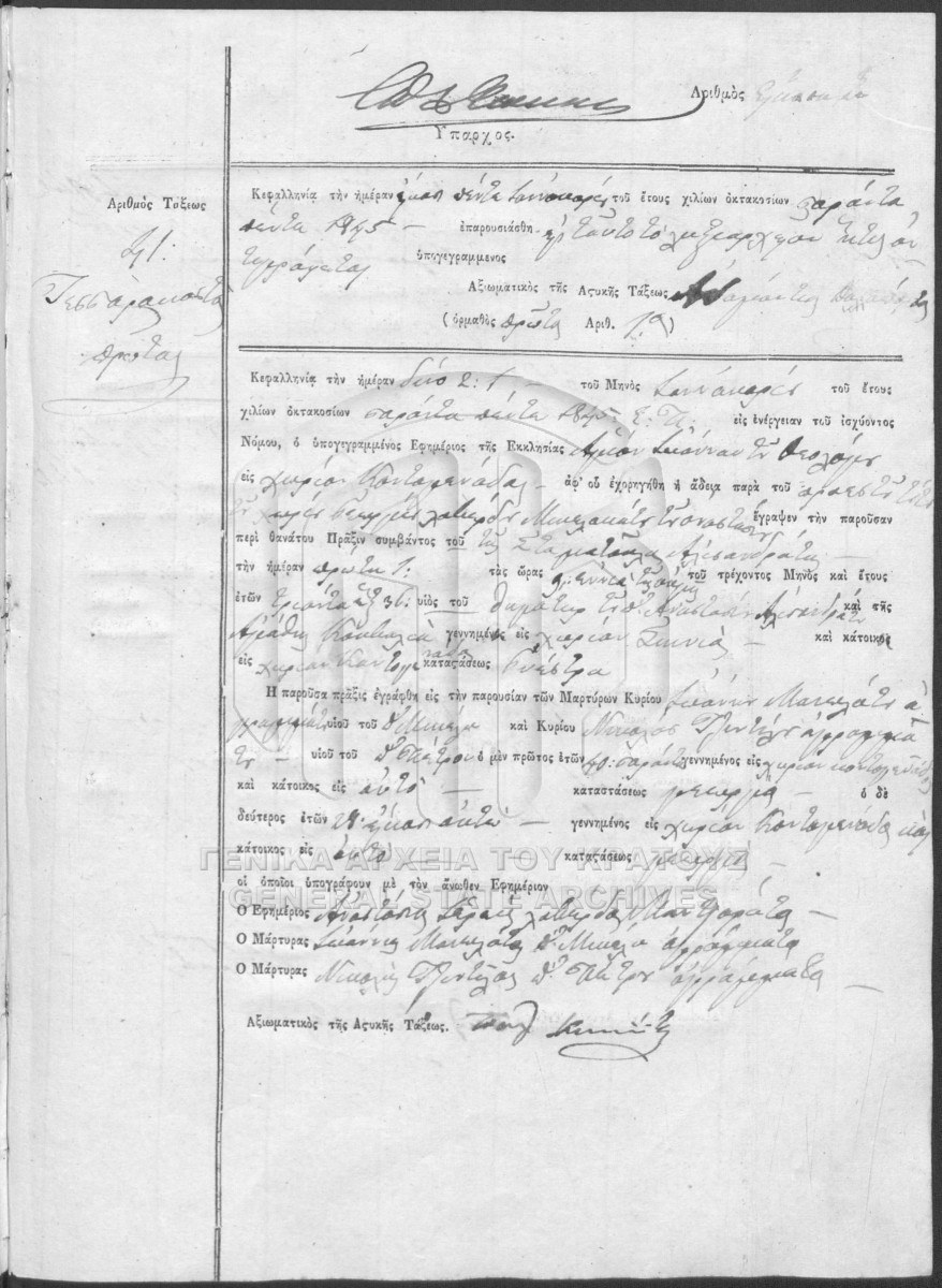 Ληξιαρχικό Αρχείο-Βιβλία Πολιτικών Αρχών Επαρχίας Πάλλης.  [1841 - 1932]