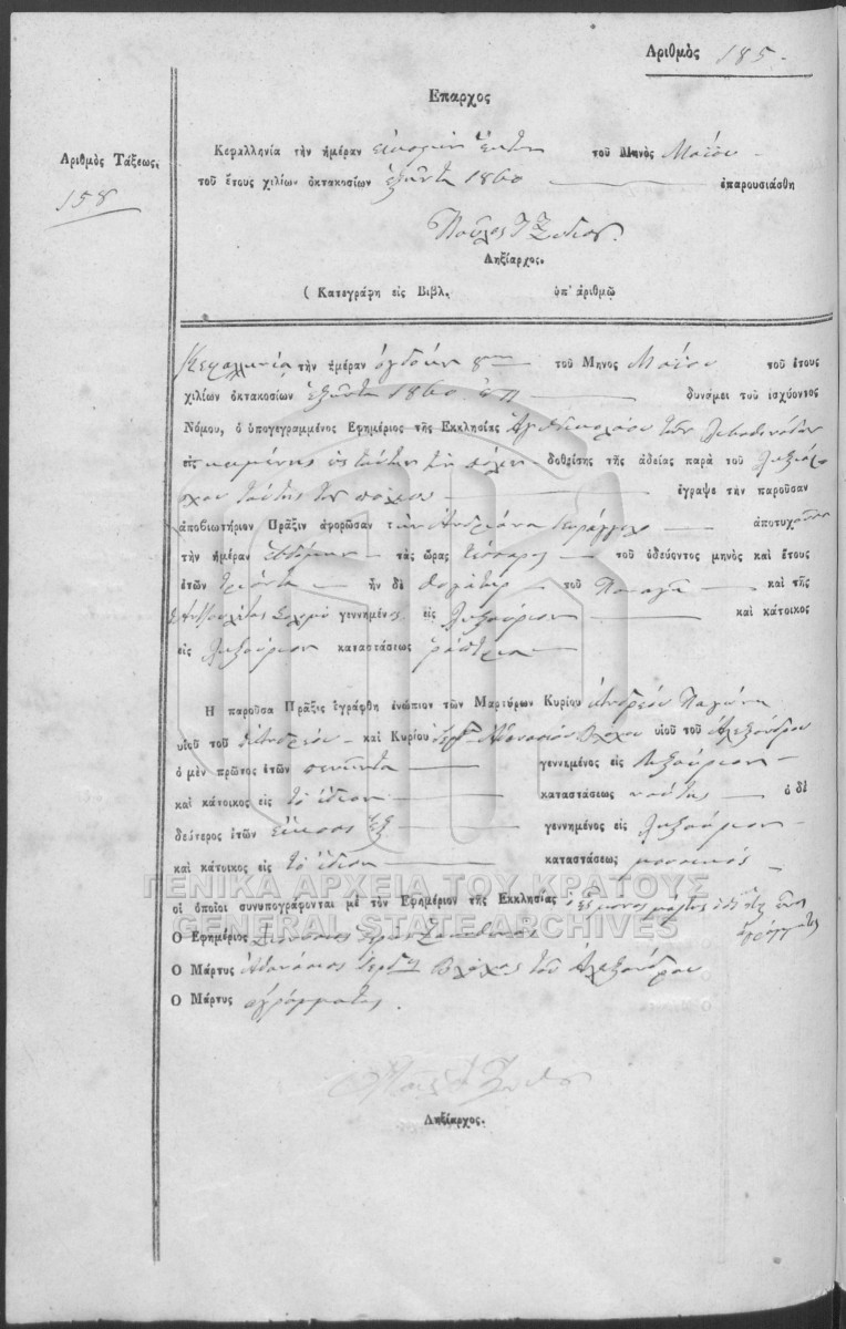 Ληξιαρχικό Αρχείο-Βιβλία Πολιτικών Αρχών Επαρχίας Πάλλης.  [1841 - 1932]