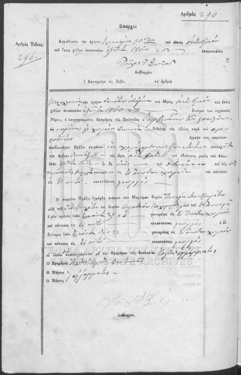 Ληξιαρχικό Αρχείο-Βιβλία Πολιτικών Αρχών Επαρχίας Πάλλης.  [1841 - 1932]