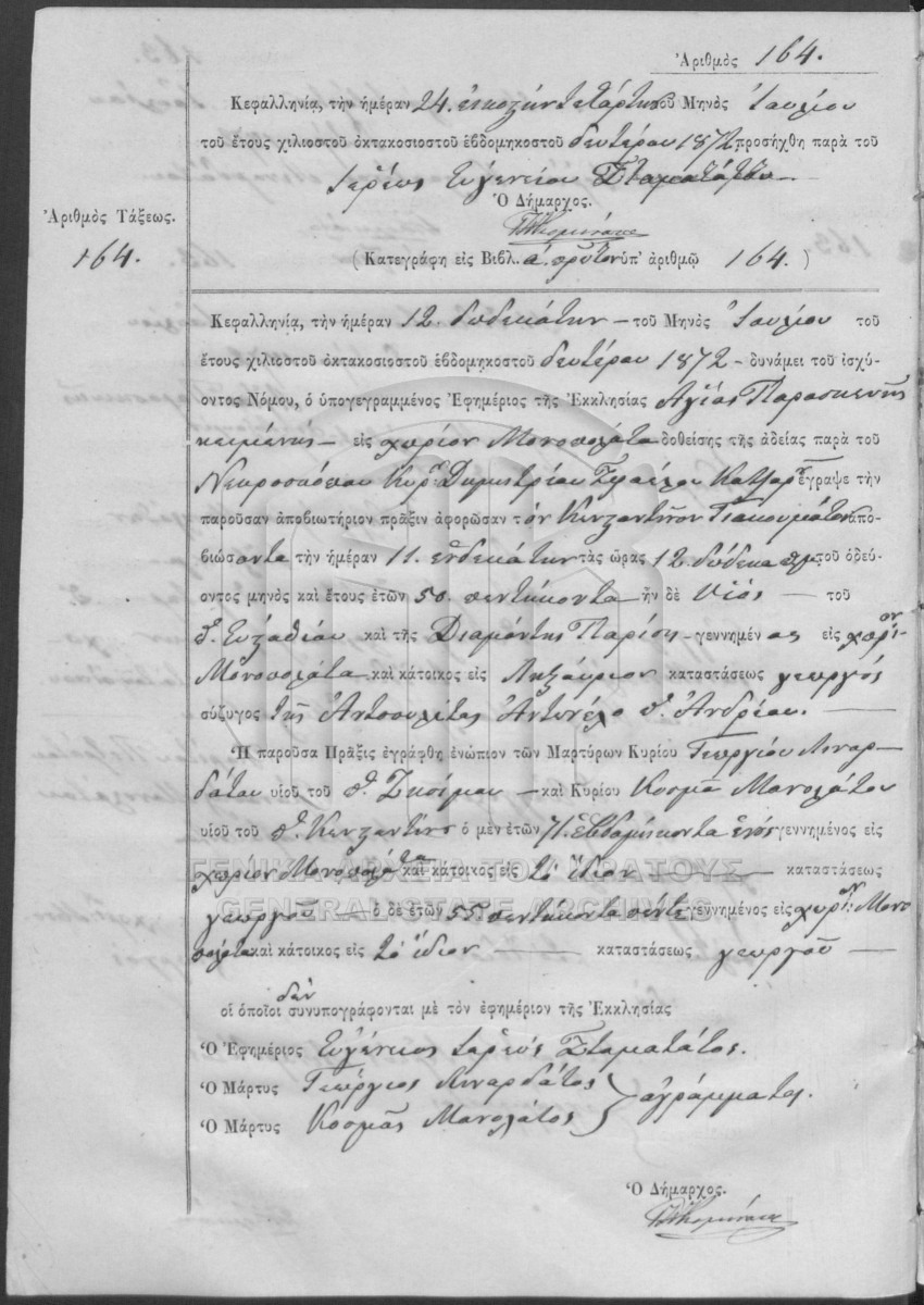 Στο αρχείο περιλαμβάνονται βιβλία όπου καταγράφονται ληξιαρχικές πράξεις γεννήσεων, γάμων, θανάτων, καθώς και σχετικά ευρετήρια της επαρχ...