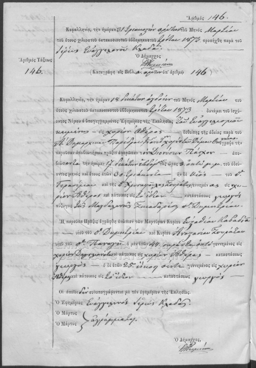 Ληξιαρχικό Αρχείο-Βιβλία Πολιτικών Αρχών Επαρχίας Πάλλης.  [1841 - 1932]
