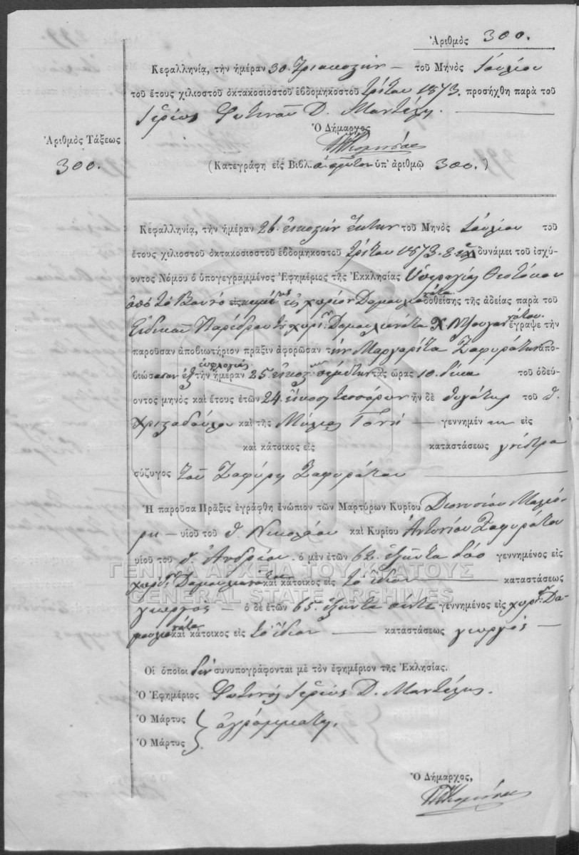 Στο αρχείο περιλαμβάνονται βιβλία όπου καταγράφονται ληξιαρχικές πράξεις γεννήσεων, γάμων, θανάτων, καθώς και σχετικά ευρετήρια της επαρχ...