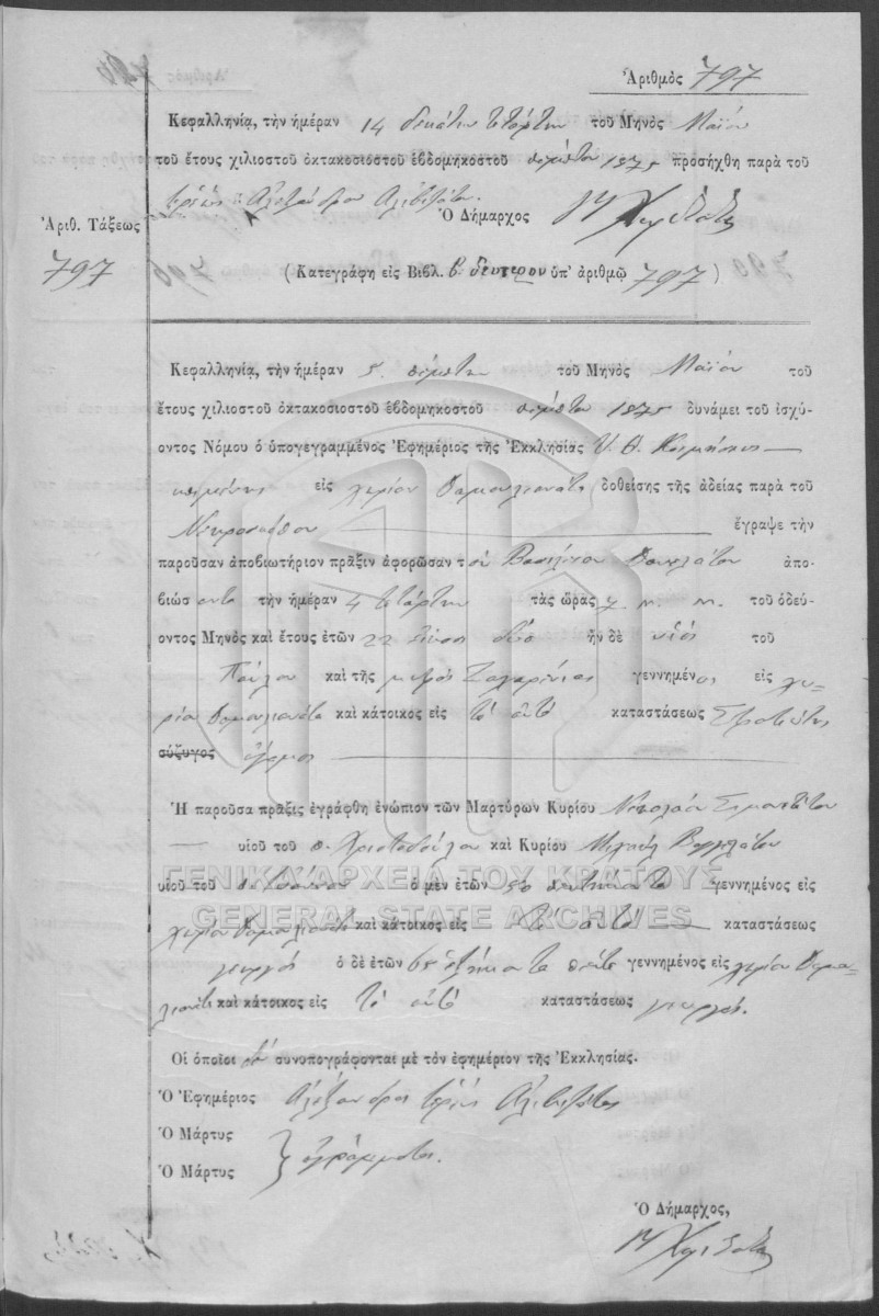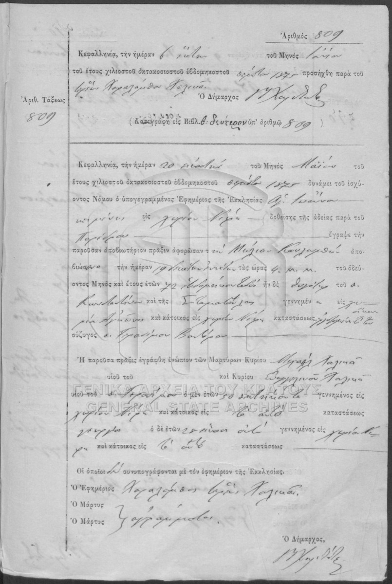 Στο αρχείο περιλαμβάνονται βιβλία όπου καταγράφονται ληξιαρχικές πράξεις γεννήσεων, γάμων, θανάτων, καθώς και σχετικά ευρετήρια της επαρχ...