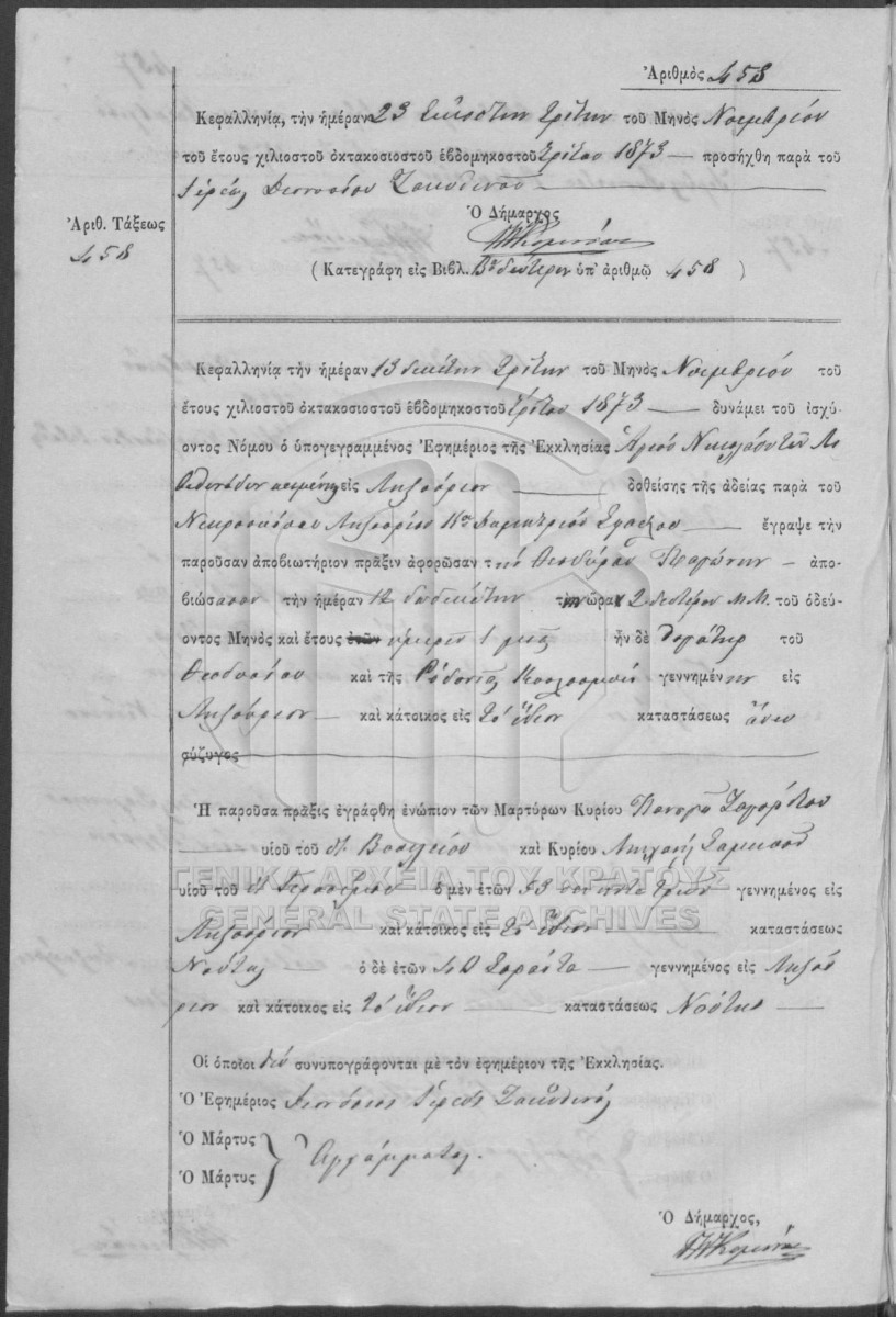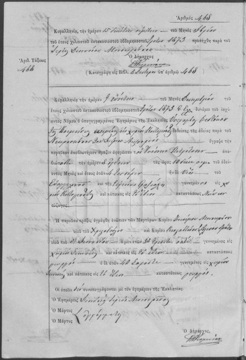 Στο αρχείο περιλαμβάνονται βιβλία όπου καταγράφονται ληξιαρχικές πράξεις γεννήσεων, γάμων, θανάτων, καθώς και σχετικά ευρετήρια της επαρχ...