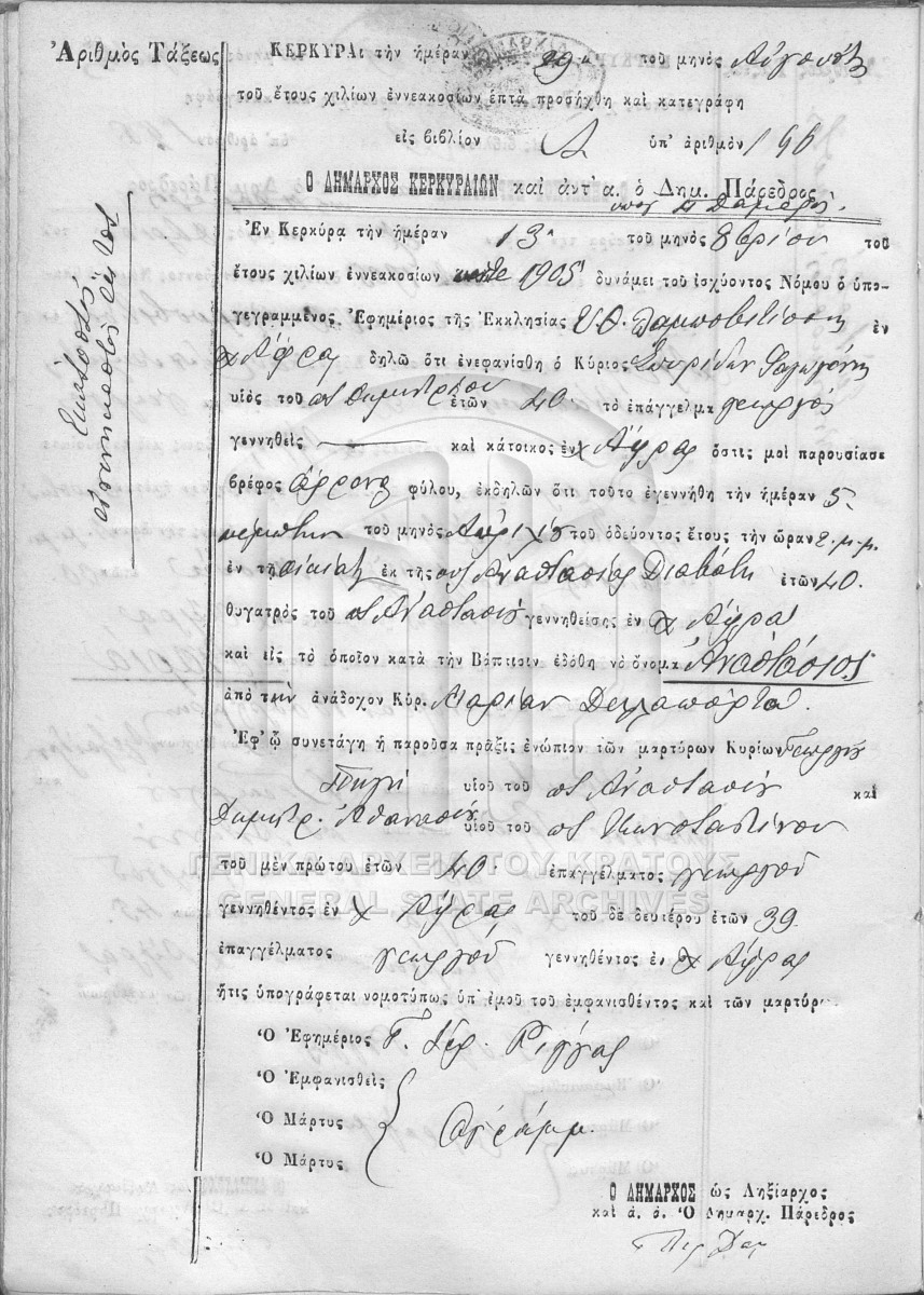 ΛΗΞΙΑΡΧΕΙΟ ΚΕΡΚΥΡΑΣ - Ληξιαρχικές Πράξεις Γεννήσεων - Εκπρόθεσμα  [1841 - 1932]