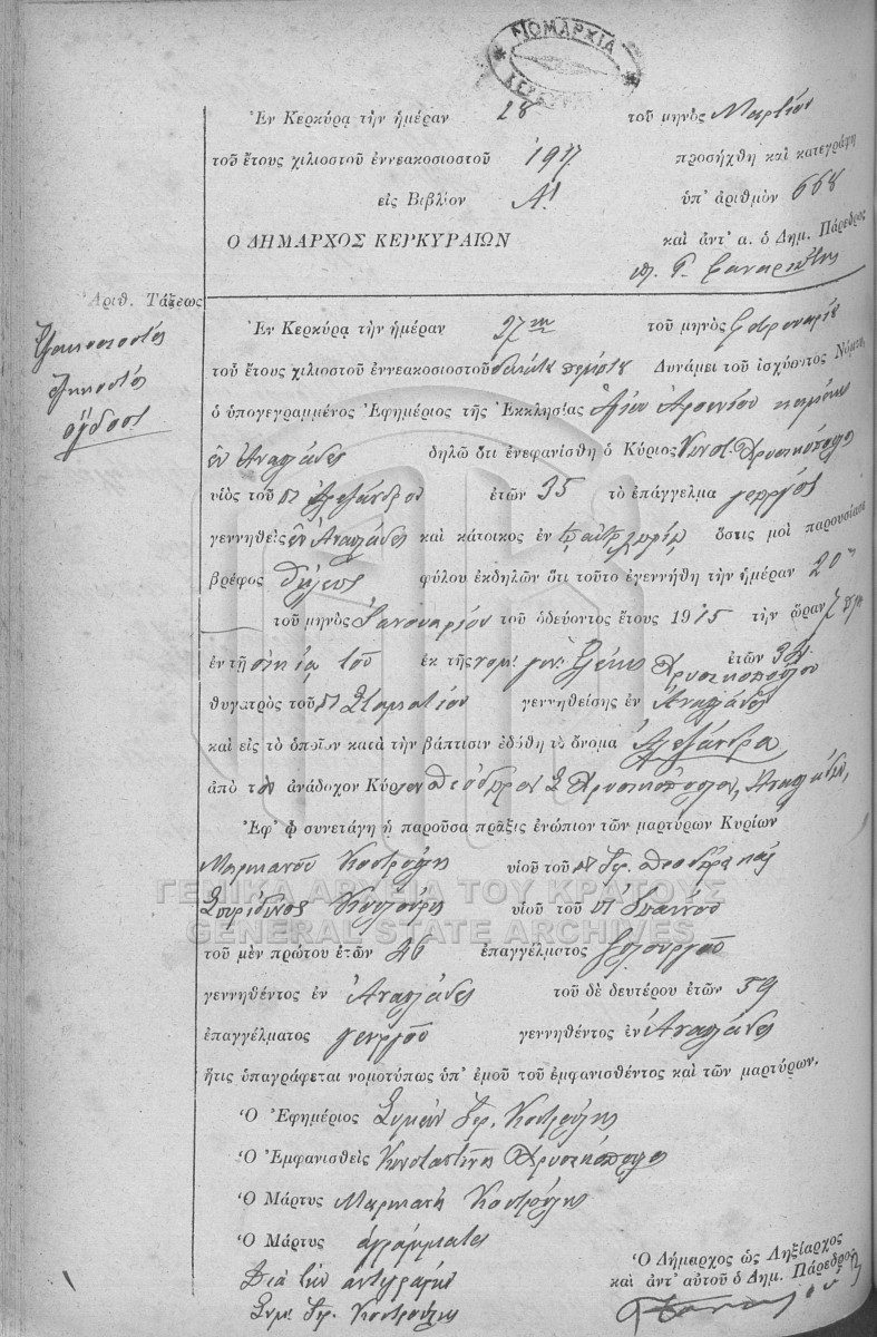 ΛΗΞΙΑΡΧΕΙΟ ΚΕΡΚΥΡΑΣ - Ληξιαρχικές Πράξεις Γεννήσεων - Εκπρόθεσμα  [1841 - 1932]