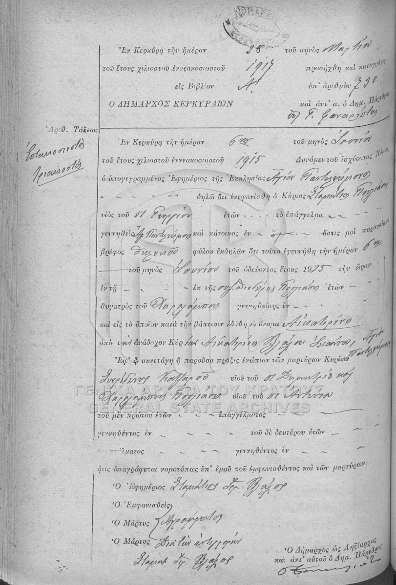 ΛΗΞΙΑΡΧΕΙΟ ΚΕΡΚΥΡΑΣ - Ληξιαρχικές Πράξεις Γεννήσεων - Εκπρόθεσμα  [1841 - 1932]