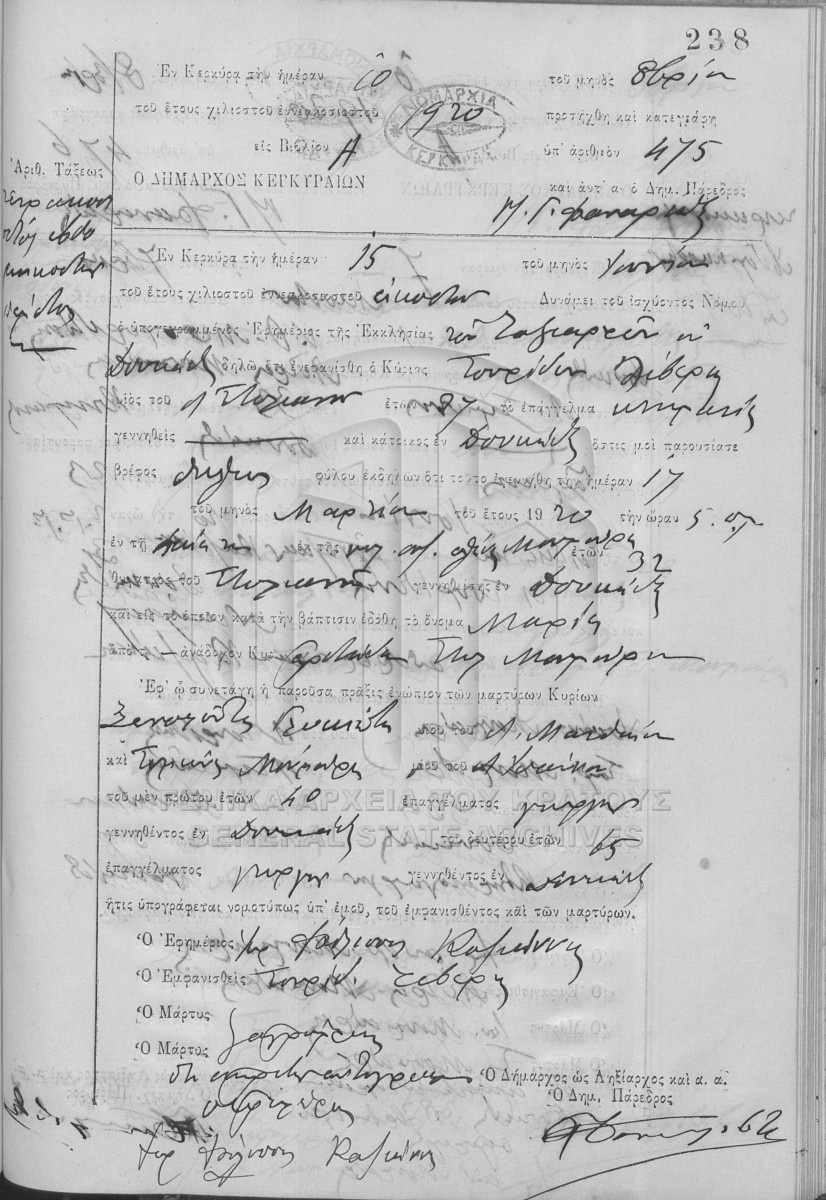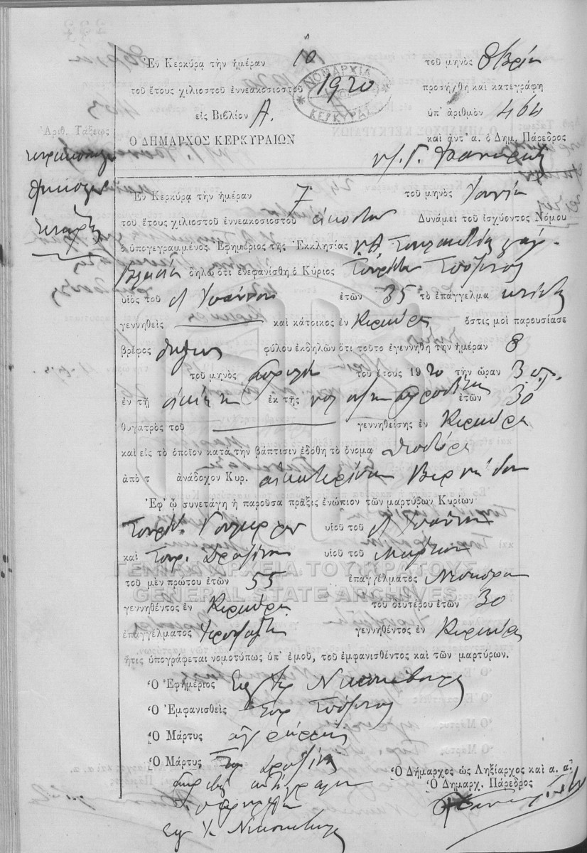 File #027 - ΛΗΞΙΑΡΧΕΙΟ ΚΕΡΚΥΡΑΣ  [1920]